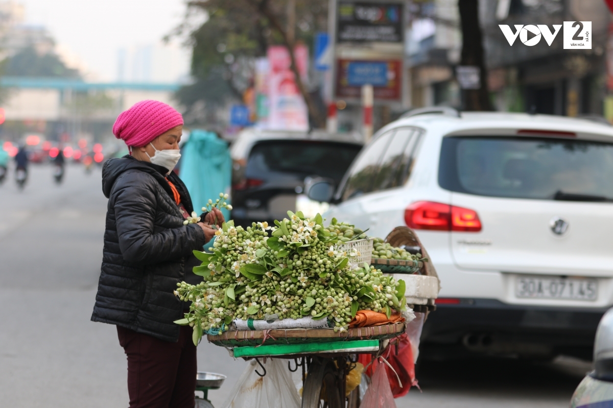 VOV.VN - Cuối tháng 2 đầu tháng 3, trong tiết trời giao mùa, trên những con phố Thủ đô lại xuất hiện những gánh hàng rong chở đầy hoa bưởi trắng tinh khôi.
