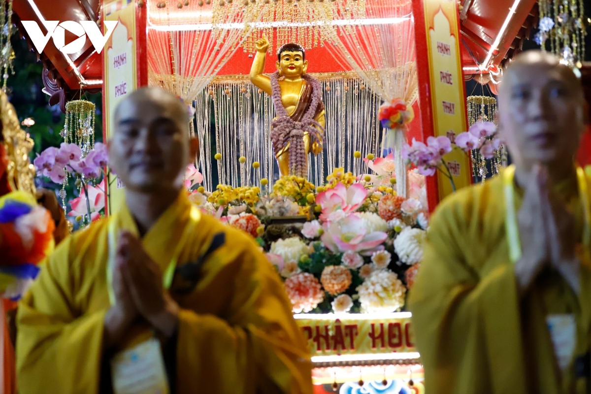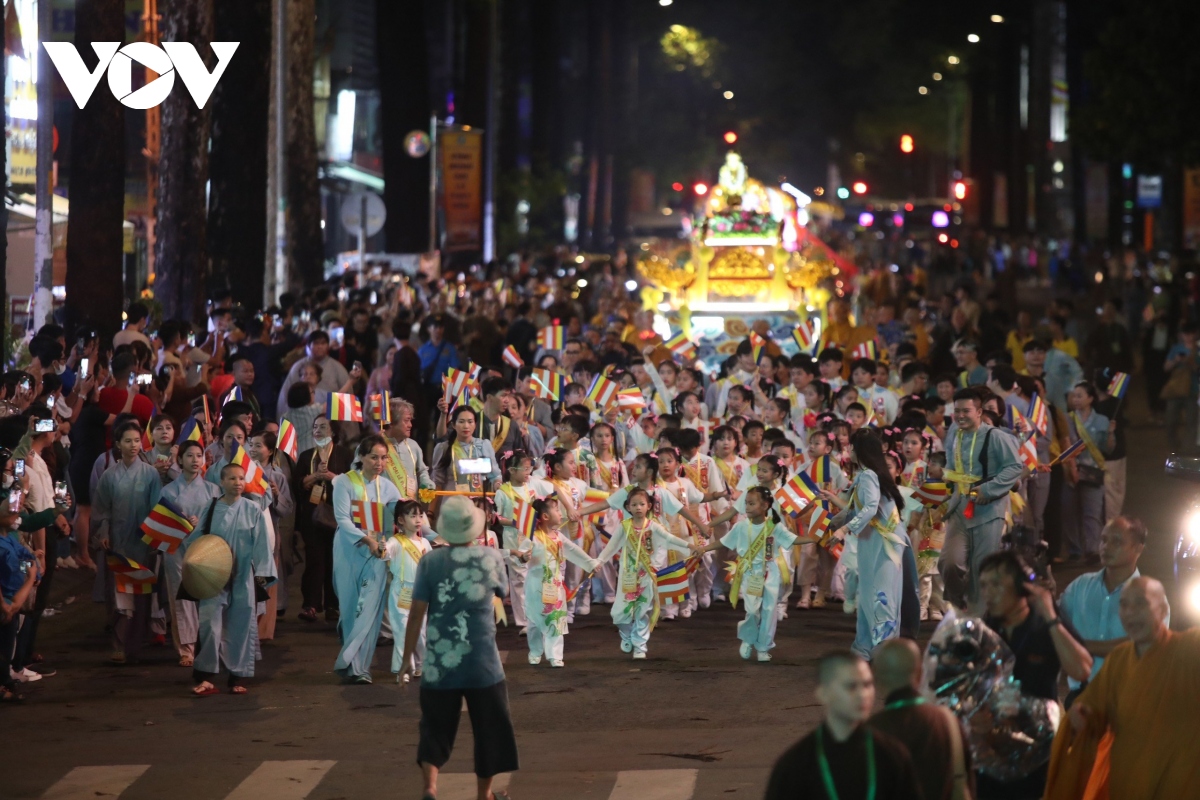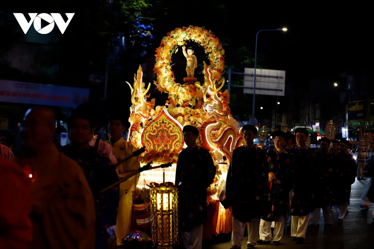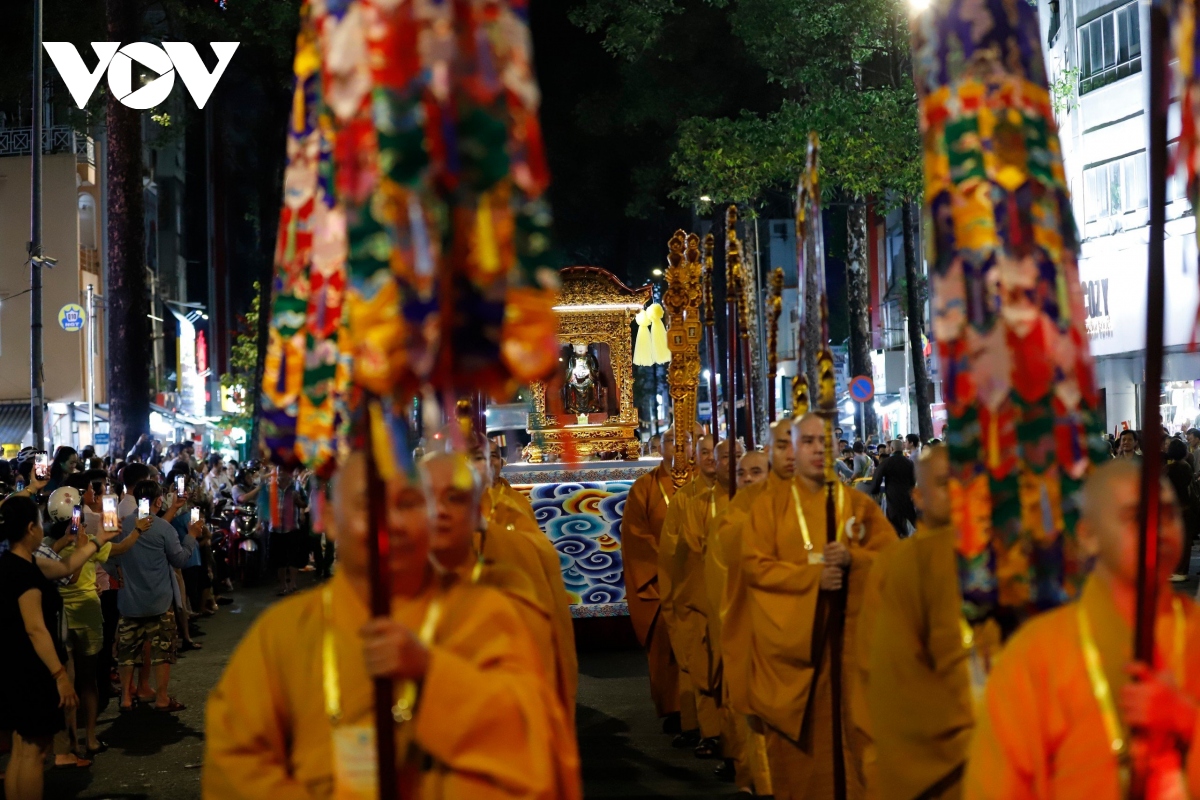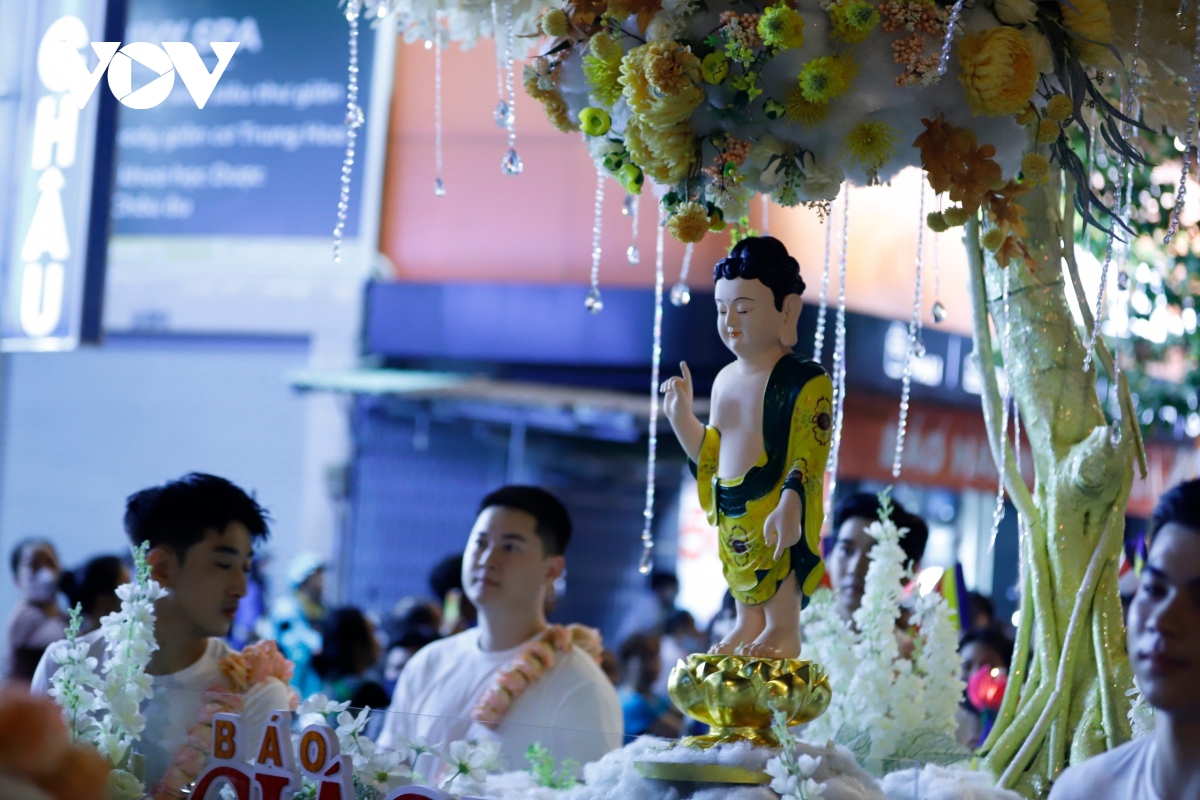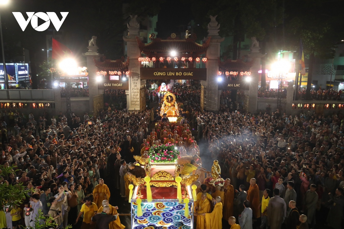 Đúng 20h, Lễ rước kiệu Phật được cử hành trang trọng, với hàng chục kiệu Phật của các ban ngành Giáo hội Phật giáo Việt Nam TP.HCM cùng các cơ sở thờ tự thuộc các hệ phái khác nhau như: Phật giáo Bắc tông, Phật giáo Nam tông, Phật giáo Khất sĩ,...