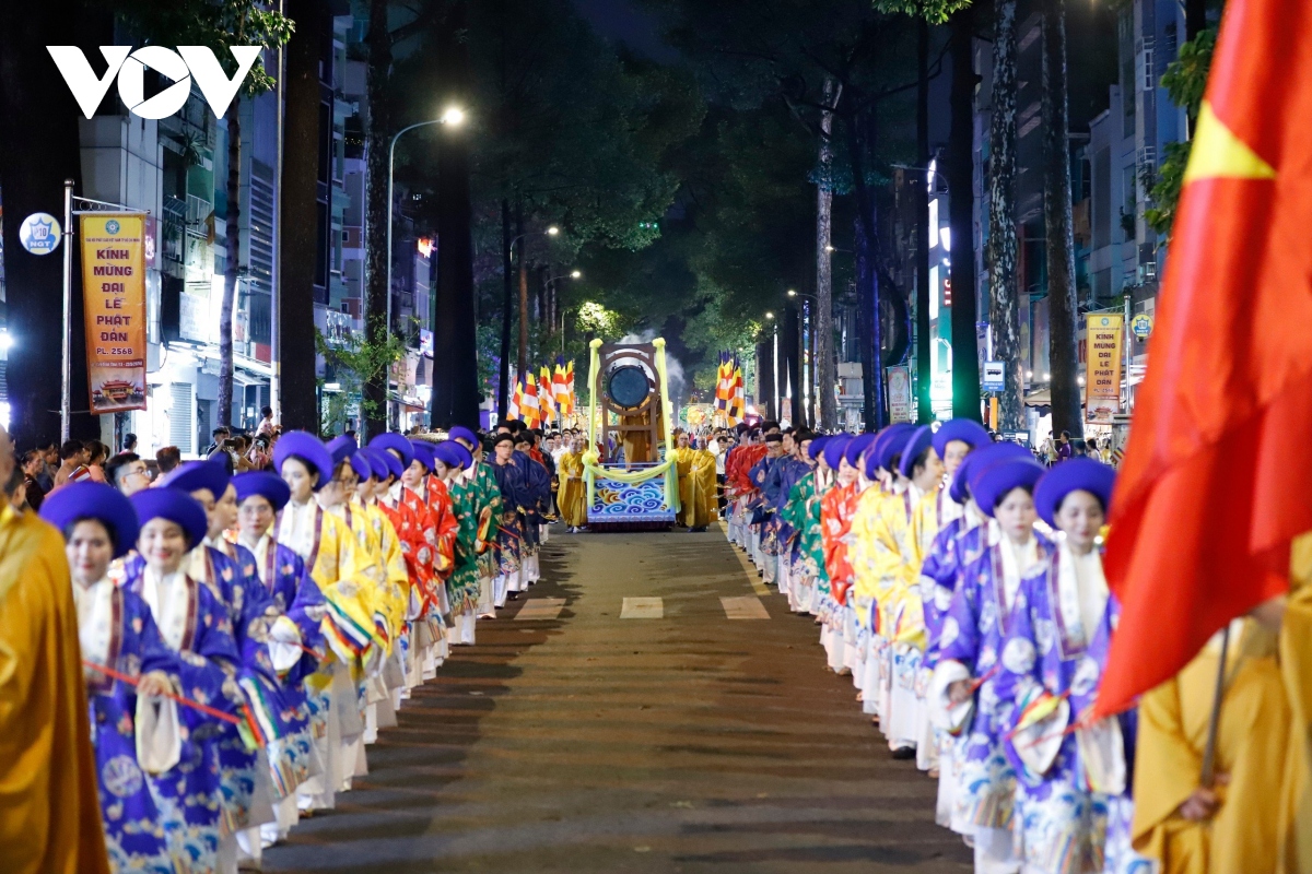 VOV.VN - Tối nay (15/5), hàng ngàn chư tăng, ni, phật tử TP.HCM tham gia diễu hành Lễ rước kiệu Phật - một sự kiện tâm linh mở đầu Tuần lễ Phật đản Phật lịch 2568, do Giáo hội Phật giáo Việt Nam TP.HCM tổ chức.