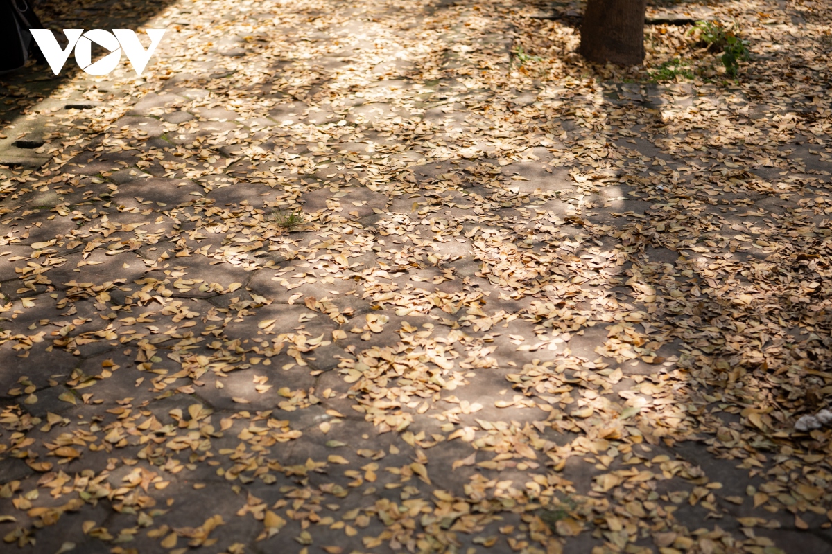 Bàng vào mùa rụng lá, thảm lá dày kín hè phố.
