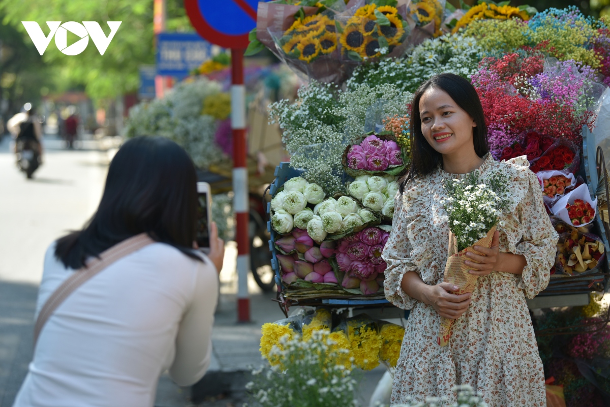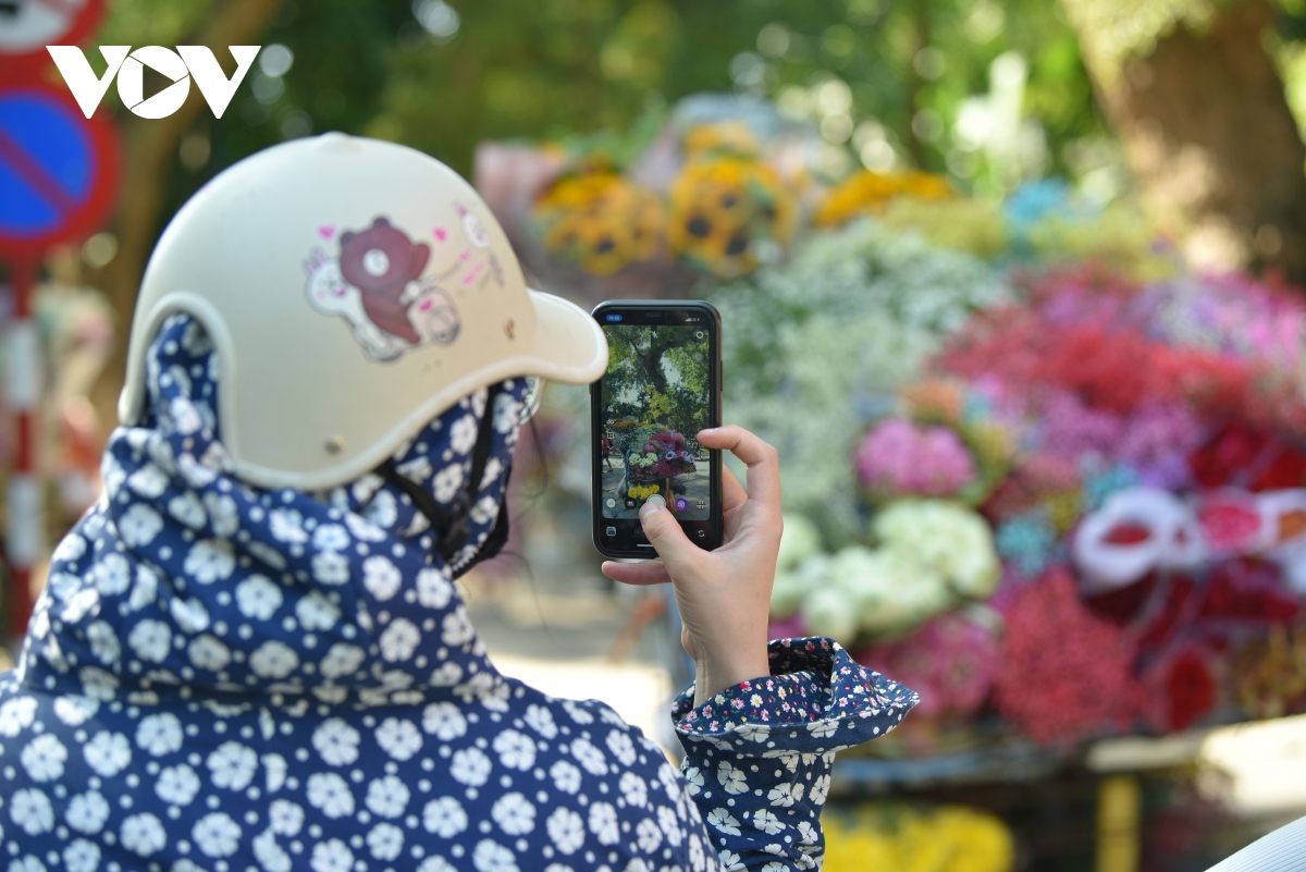 Những gánh hoa nhiều màu sắc của thạch thảo trở thành bối cảnh chụp ảnh lý tưởng.