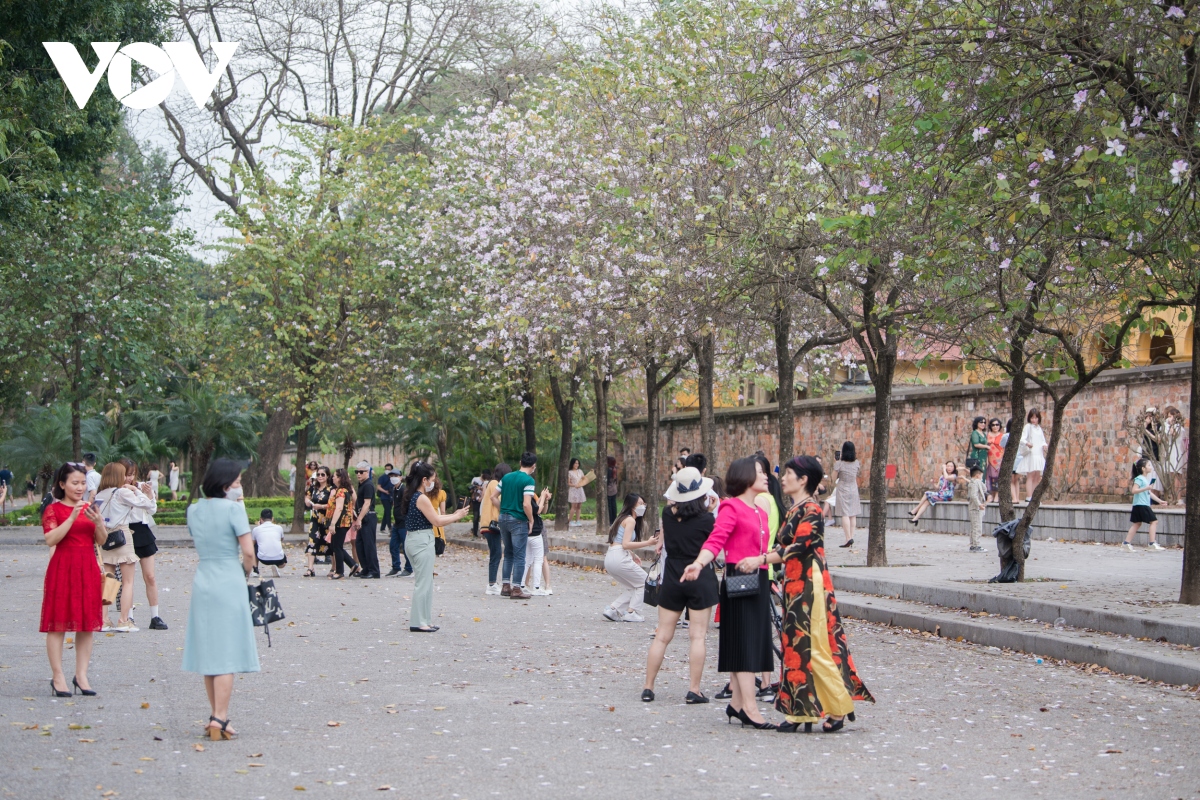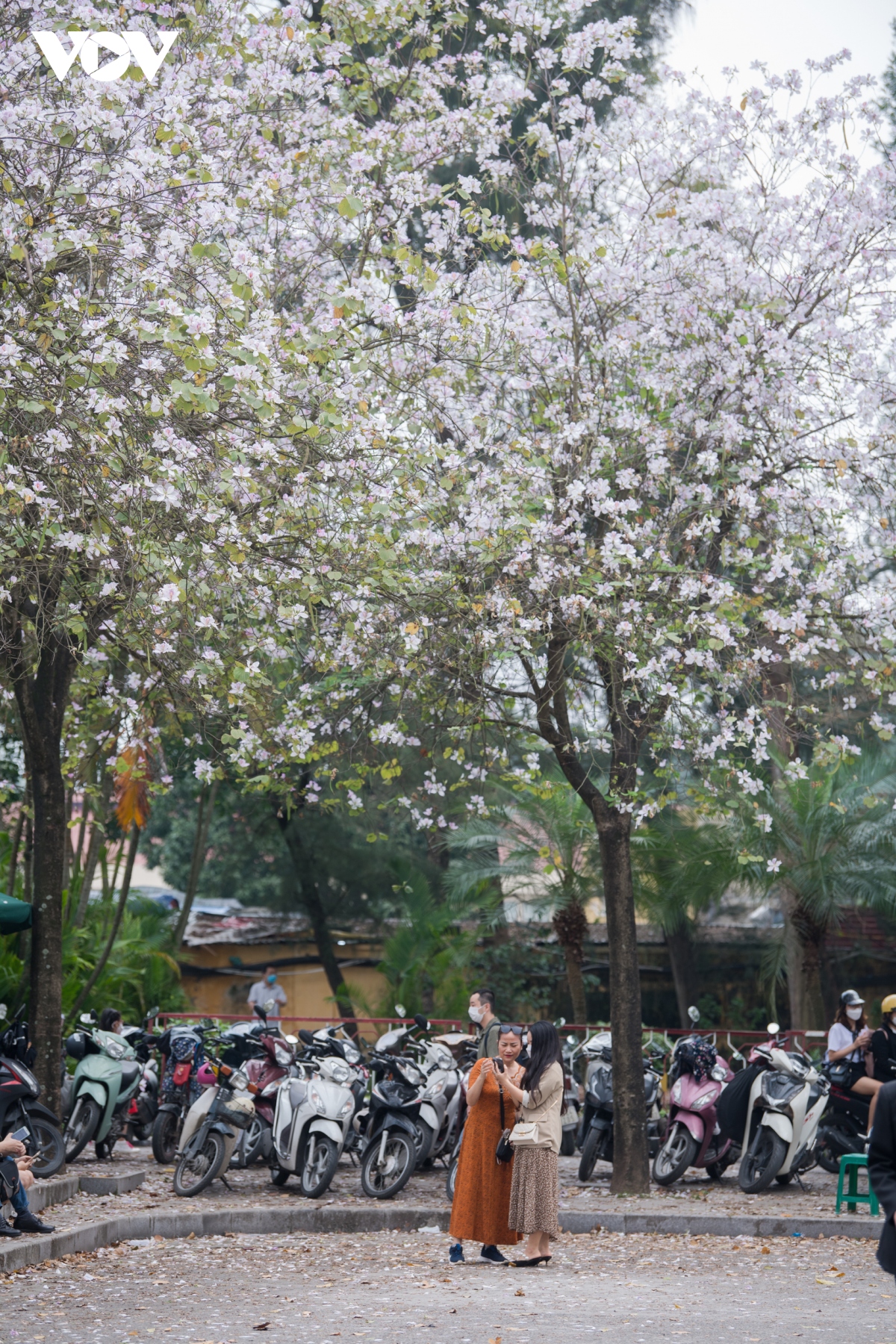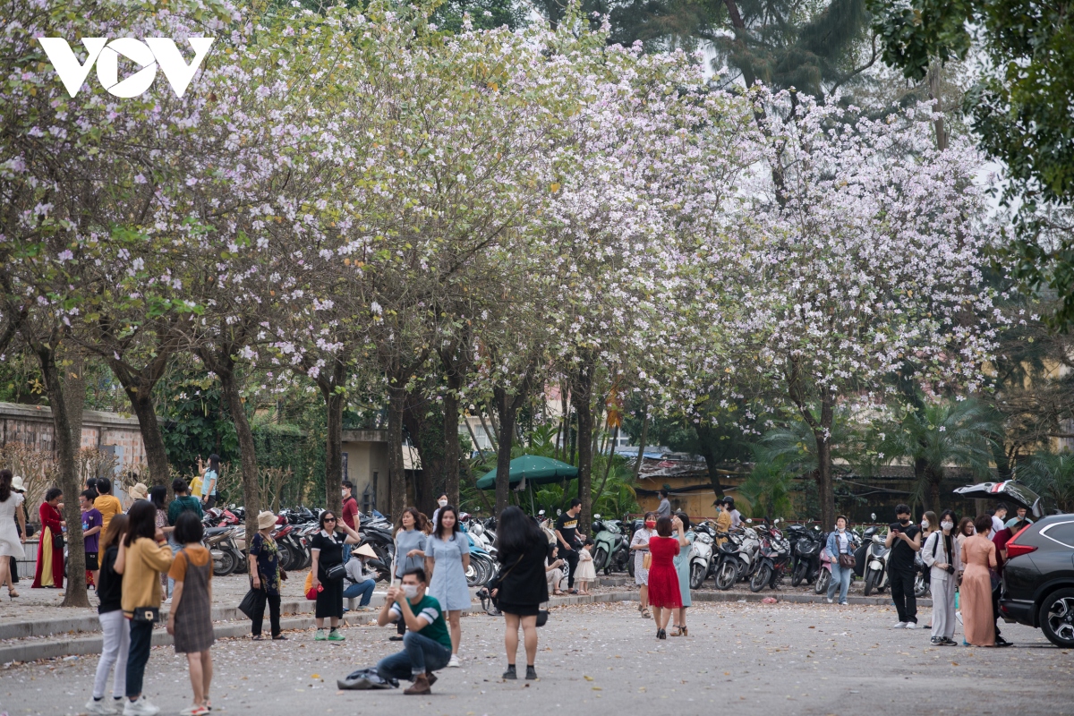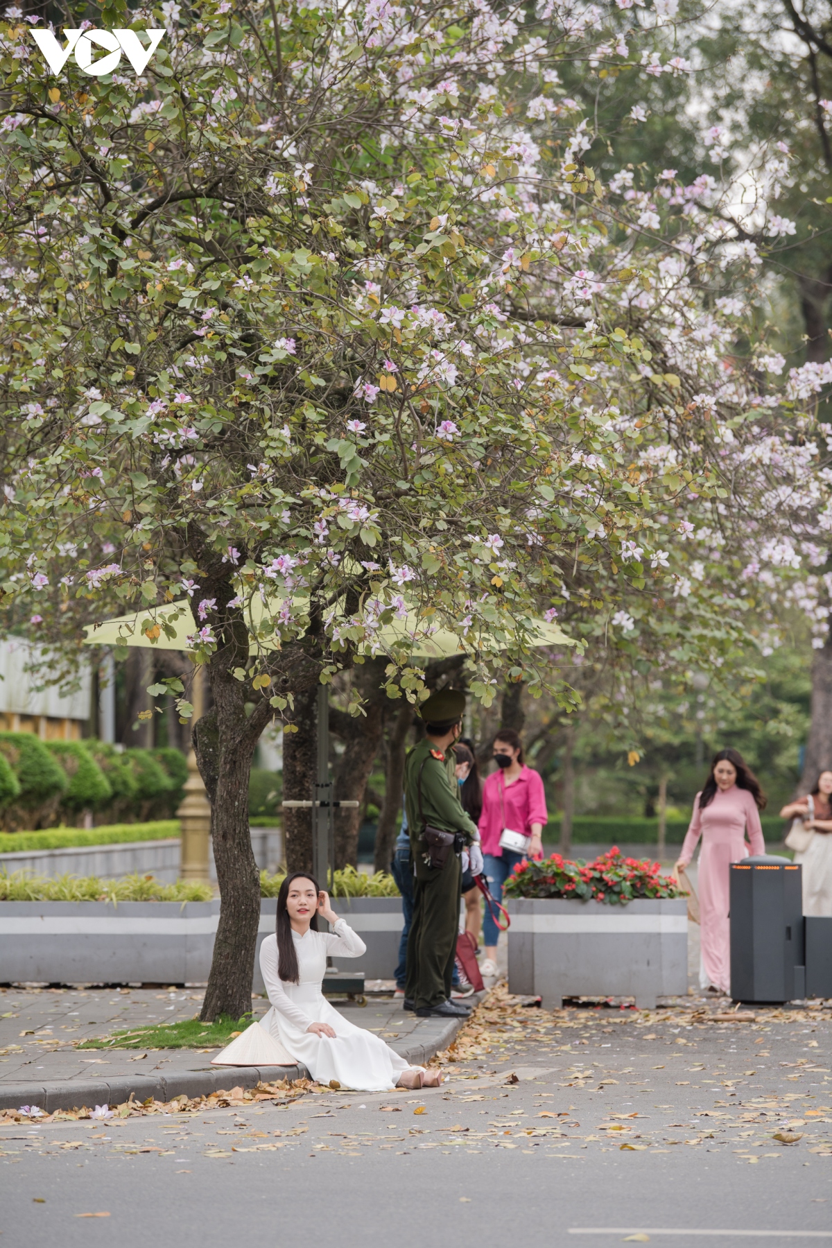 VOV.VN - Những hàng hoa ban rộ nở trên đường Bắc Sơn, Hoàng Diệu khiến người dân Thủ đô thích thú rủ nhau tới chụp ảnh, lưu giữ kỷ niệm trong những ngày tiết trời thủ đô còn vấn vương chút xuân.