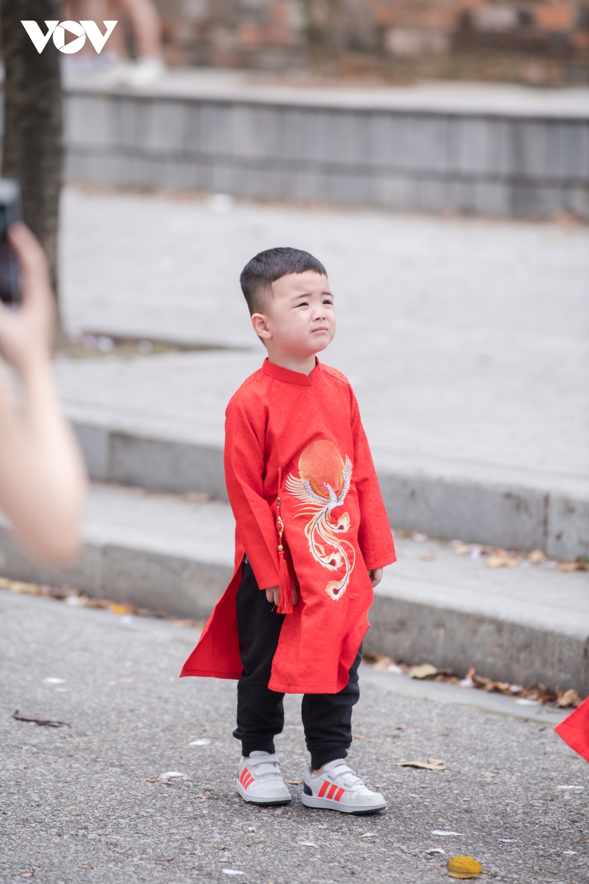 Không chỉ các bạn trẻ, những người tuổi trung niên cũng diện những bộ áo dài thật đẹp để chụp ảnh cùng hoa ban