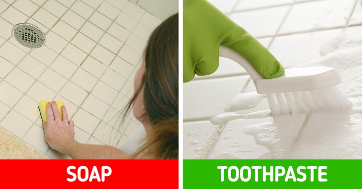 5. Dùng kem đánh răng để loại bỏ váng xà phòng