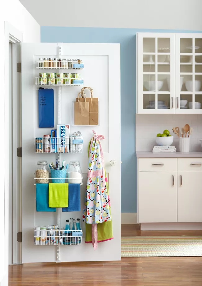 Đừng lãng phí không gian này, bởi nó sẽ là nơi giúp bạn lưu trữ được khá nhiều đồ. Bạn hoàn toàn có thể sử dụng những giỏ liên kết với nhau để đựng những đồ vật nhẹ như kính đeo, chìa khóa,... hoặc cài thêm móc để treo mũ, khăn,... Ngoài ra, hãy thử sáng tạo khi gắn nam châm hút được kim loại như bấm móng tay, kéo nhỏ, kéo cắt móng cho vật nuôi,...
