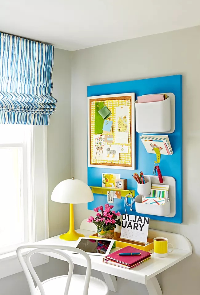 Sáng tạo với không gian xung quanh bàn làm việc cũng là một ý tưởng lưu trữ tuyệt vời cho căn nhà. Bạn hoàn toàn có thể sử dụng bức tường bên cạnh bàn để lắp đặt kệ để sắp xếp sách, giấy tờ, bút,... Điều này sẽ giúp giảm thiểu việc bày bừa lộn xộn trên mặt bàn học và bàn làm việc của bạn. Ngoài ra, việc tận dụng khoảng trống dưới đất bằng cách đặt những chiếc thùng và lưu trữ sách, vở, đồ dùng nặng,... cũng giúp không gian được gọn gàng hơn.