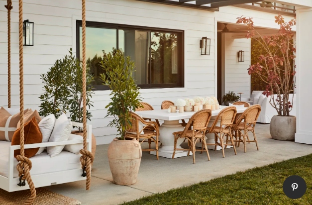 Phòng khách của ngôi nhà thiết kế thoáng đãng, với cửa lớn nhìn ra bên ngoài. Olivia cũng thiết kế một bộ sofa đặt ngoài trời để cô có thể hít thở không khí trong lành.