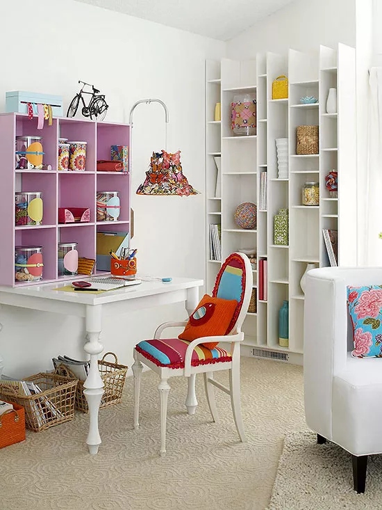 Một số trẻ em thích sự sáng tạo của thủ công. Đôi khi, chúng tập trung vào một sở thích như làm đồ trang sức, từ thu thập thẻ bài đến dệt khung cửi. Xây dựng cấu trúc thành một không gian với những sở thích của con, bao gồm cả kệ lưu trữ và nơi con được làm việc. Ngoài ra hãy khiến cho không gian tạo được cảm hứng cho trẻ bằng cách chọn màu sơn và phụ kiện tươi sáng.