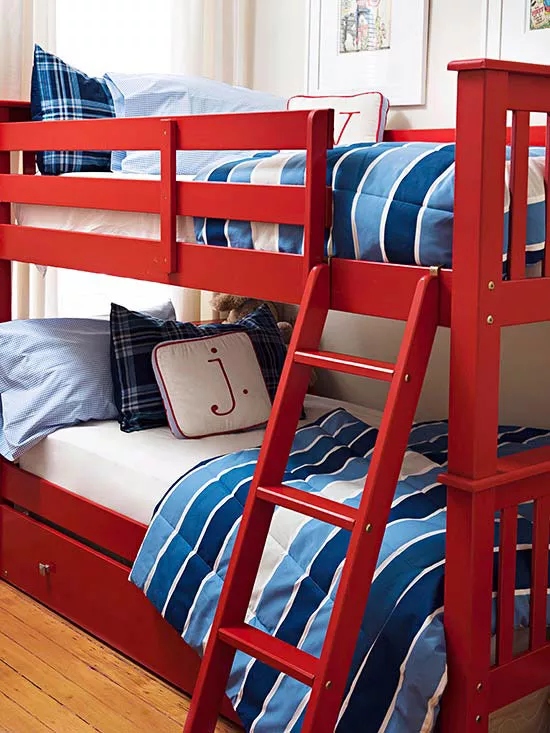 Nhiều đứa trẻ được ở chung phòng với anh chị em. Đó là một bài học về sự gắn bó và chung sống sẽ giúp ích cho con trong suốt cuộc đời. Đó cũng là một bài học về sống có tổ chức. Một số giường tầng thậm chí còn bao gồm cả bộ lưu trữ tích hợp, chẳng hạn như ngăn kéo dưới gầm hoặc đồ trang trí đầu giường. Trong trường hợp có 2 giường đơn, hãy sử dụng không gian bên dưới mỗi tấm nệm để chứa đồ và thả ga giường thõng xuống để che giấu. Ngoài ra, bạn cũng có thể làm cho con cảm thấy đặc biệt với các tác phẩm nghệ thuật và bộ đồ giường cá nhân hóa, phối hợp với cùng một màu sắc hoặc họa tiết nổi bật.