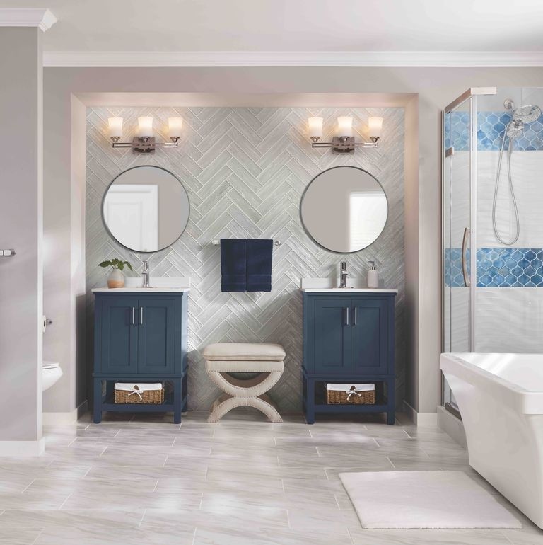 Các bề mặt phản xạ - gương, kính và kim loại sáng bóng - tạo ra ánh sáng xung quanh một không gian, giúp không gian trông rộng hơn và thoáng hơn. Hãy ghi nhớ: Khu vực phía trên bàn trang điểm không phải là nơi duy nhất để treo gương hoặc tủ thuốc; hãy thử một cái trên một bức tường bên cạnh để thêm một chút lấp lánh.