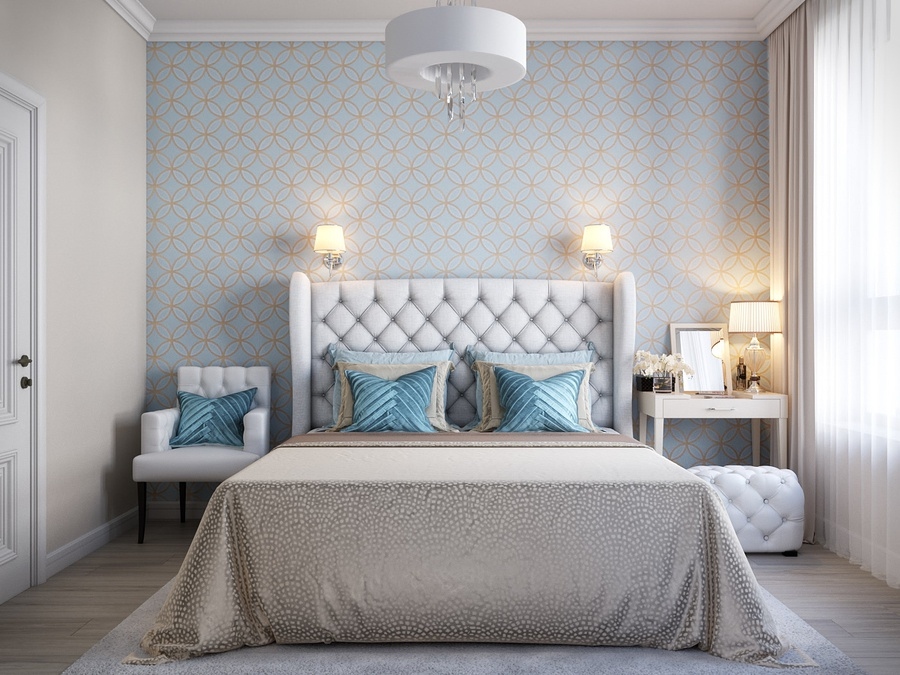 Một trong những lợi thế của việc lựa chọn họa tiết đương đại cho bức tường làm điểm nhấn phòng ngủ là sự đa dạng. Bạn có thể sử dụng hình nền lục giác lặp đi lặp lại, giấy dán tường 3D, những đường vẽ họa tiết chữ V đơn giản hay những hình vẽ địa lý phức tạp. Thậm chí, có thể chọn một chất liệu khác của bức tường để tạo sự tương phản giữa hình ảnh và kết cấu... Tất cả chúng đều giúp bạn sở hữu một bức tường đầy nổi bật và cuốn hút.