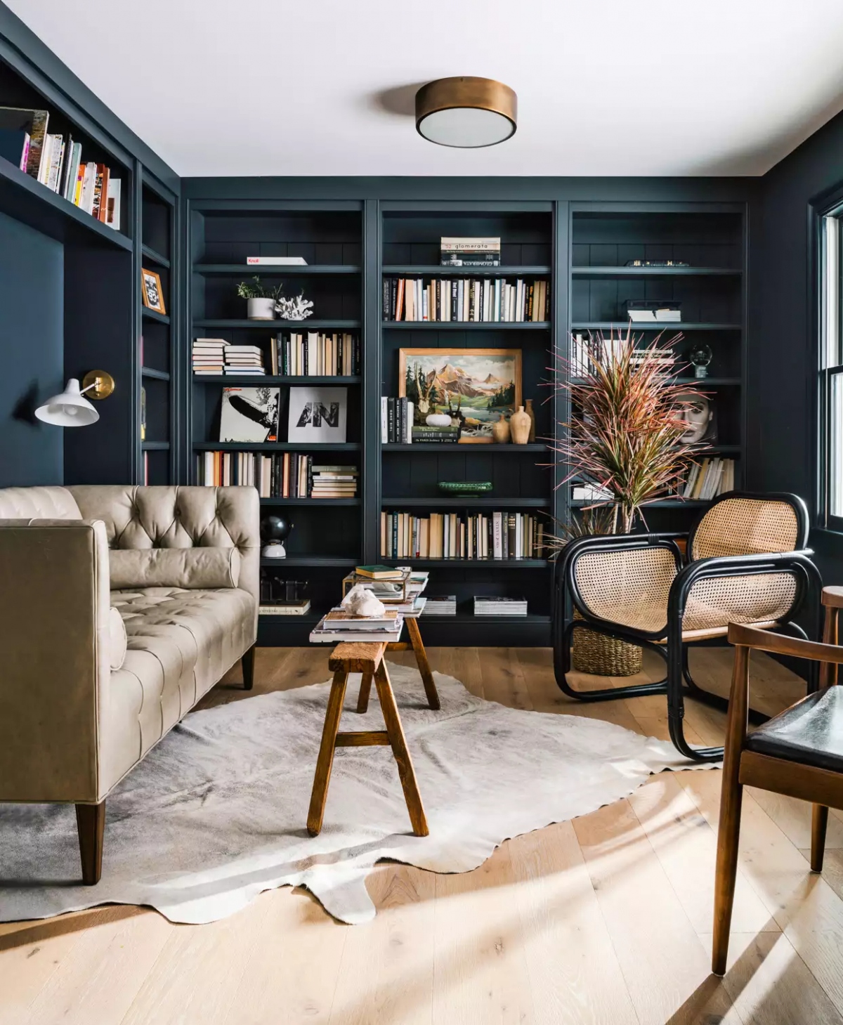 Sử dụng gam màu tối để sơn tường, biến chúng thành màu chủ đạo của căn nhà chính là một sự táo bạo trong thiết kế, tạo thêm sự thú vị và kịch tính cho ngôi nhà của bạn. Còn nếu bạn không đủ "táo bạo" để sơn cả căn phòng ngập tràn màu tối mà thích sự an toàn, hãy thử bắt đầu với những điểm nhấn nhỏ ở một mảng tường chủ đạo trong căn phòng cũng là một lựa chọn tốt. Đối với lựa chọn này, bạn cũng có thể áp dụng với những khu vực khác trong căn nhà, ví dụ như nội thất nhà bếp, cầu thang,...