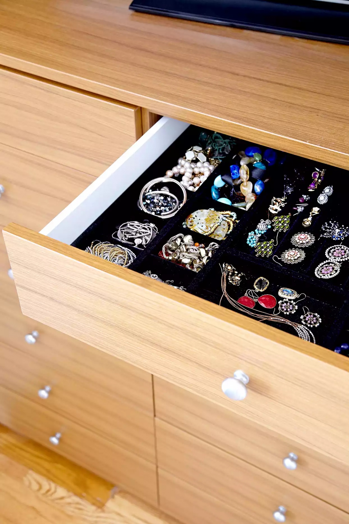 Việc cất giữ đồ trang sức không cẩn thận có thể biến chúng trở thành một đống lộn xộn. Để giảm thiểu tình trạng này nhưng vẫn làm nổi bật bộ sưu tập thời trang, hãy cân nhắc đến việc chỉ sử dụng những món đồ bạn thích, và nếu đó là những món đồ bạn không sử dụng, đừng ngần ngại đem nó tặng cho người bạn quý mến. Sắp xếp chúng ngăn nắp lên bảng ghim để có được một góc gọn gàng. Đồng thời, bạn nên sửa chữa những món đồ bị hỏng và nếu không thể cứu vãn, hãy vất chúng đi.