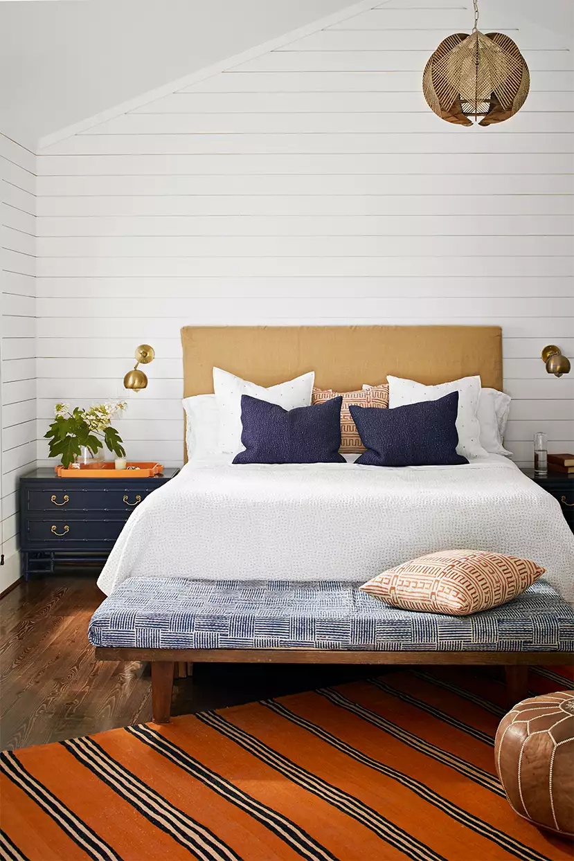 Các khu vực nằm ngoài lối đi thường có thể cung cấp không gian lưu trữ tiện ích, giúp cho phòng ngủ trông gọn gàng hơn. Và không gian phía trên gần trần nhà cũng là một nơi tốt cho việc sắp xếp đồ đạc thông minh. Bạn có thể sử dụng không gian này để quần áo trái mùa, hay những đồ dùng ít sử dụng.