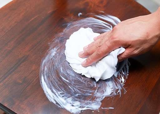Một cách sửa chữa đáng ngạc nhiên cho vết nước đến từ thứ mà bạn không ngờ tới. Dầu trong mayonnaise có tác dụng làm thay đổi độ ẩm của vòng nước và khắc phục bất kỳ cặn vẩn đục nào trong đồ nội thất bằng gỗ. Việc của bạn cần làm chỉ là dùng khăn giấy chấm sốt mayonnaise lên vết bẩn, rồi để yên đó trong vài giờ hoặc qua đêm. Sau đó, bạn hãy lau sạch vết mayo bằng một miếng vải sạch và lau lại vài lần để bề mặt được sạch bóng.