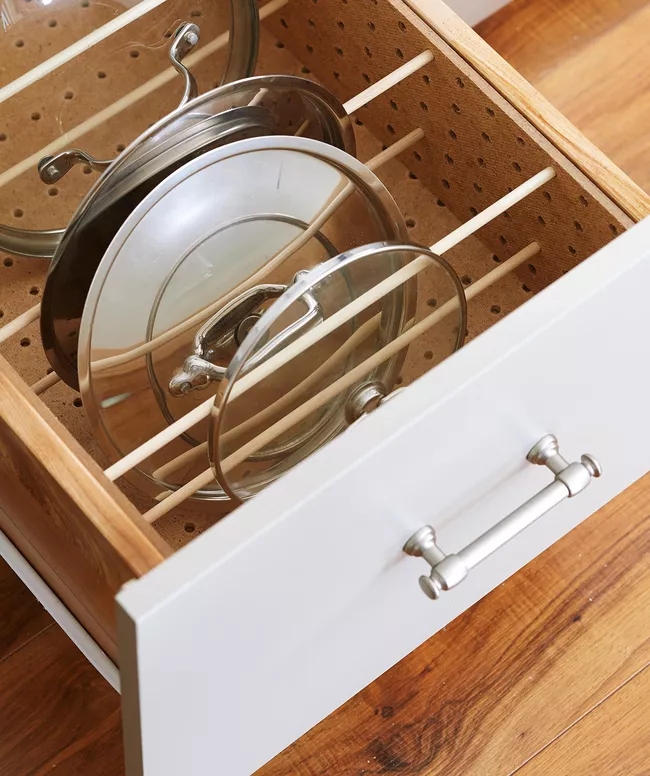 7. Cất nắp đậy xoong nồi trong ngăn kéo