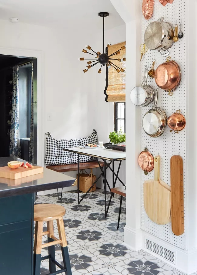 Một bảng ghim là một ý tưởng lưu trữ xoong nồi hoàn toàn có thể được tùy chỉnh theo ý muốn của bạn. Lắp đặt một tấm ván ghim trên tường và sử dụng nhiều loại móc để treo xoong nồi lên bằng tay cầm của chúng. Ý tưởng tổ chức nhà bếp này cũng sử dụng đặc biệt có hiệu quả đối với các vật dụng khác bao gồm thớt, dụng cụ nấu ăn, kéo làm bếp và hơn thế nữa.