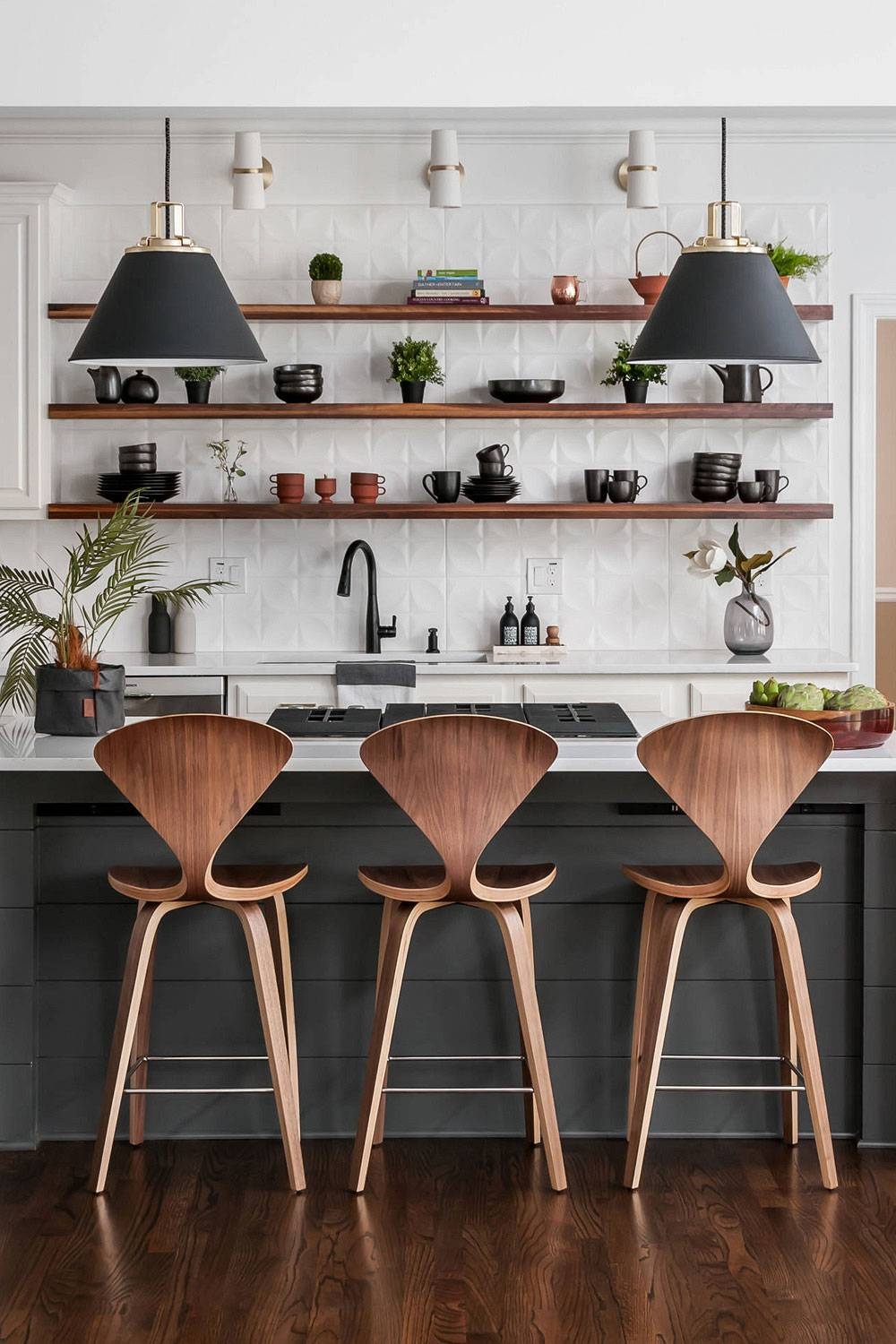 Hãy tự do thể hiện cá tính và làm cho những món đồ trang trí nhà bếp gắn kết hơn với phần còn lại của ngôi nhà. Các kệ mở không chỉ dành riêng để trưng bày các món ăn, gia vị. Hãy đảm bảo chúng còn có điểm nhấn bởi khay trang trí, nến hoặc sách nấu ăn yêu thích của bạn.
