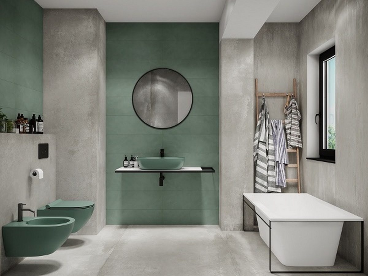 Màu xanh lá cây được liên kết từ sự yên bình và thanh mát, vì vậy màu sắc này sẽ là một lựa chọn tuyệt vời cho không gian nhẹ nhàng và thư giãn. Nếu muốn màu sắc truyền tải sự yên bình và sang trọng đồng thời, màu lá thông của Pantone là sự lựa chọn phù hợp cho bạn. Tông màu xanh lá cây đậm hấp dẫn tạo cảm giác bình tĩnh và nhẹ nhàng trong khi tạo ra một không gian phòng tắm tuyệt vời. Bổ sung thêm những đồ nội thất bằng gỗ hoặc giả gỗ cũng sẽ mang lại cảm giác tự nhiên và ấm áp.