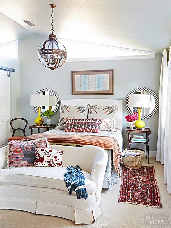 Sắp xếp ghế cuối giường của bạn theo phong cách vintage cũng khá đơn giản. Đó chỉ cần là những chiếc ghế đơn được làm bằng gỗ, ghế nhỏ đan bằng mây,... và trang trí thêm những chiếc khăn hoặc lót ghế đa màu sắc để tạo điểm nhấn cho căn phòng. Đây sẽ là nơi để bạn nghỉ ngơi và thư giãn. Sẽ thật tuyệt nếu bên cạnh là chiếc bàn nhỏ để bạn có thể ngồi nhâm nhi tách trà và thưởng thức những chiếc bánh ngọt yêu thích vào dịp cuối tuần. Chú ý tạo sự gắn kết giữa giường của bạn với ghế, bằng cách chọn đồ nội thất và phụ kiện trong cùng một bảng màu.