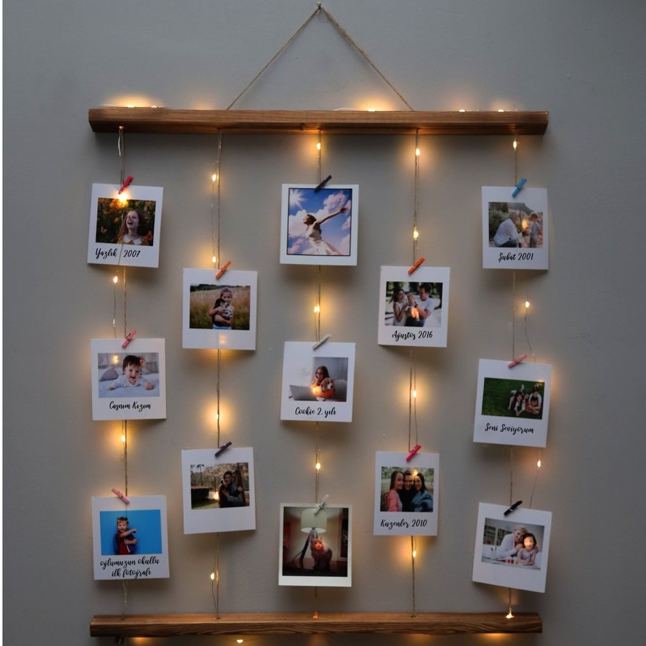 Với những dây đèn led nhỏ và một số bức ảnh yêu thích của bạn, bạn có thể tạo ra một bức tường với những tấm ảnh treo tuyệt đẹp sẽ khiến bạn cảm thấy như đang ở trong không gian của nhà mình.