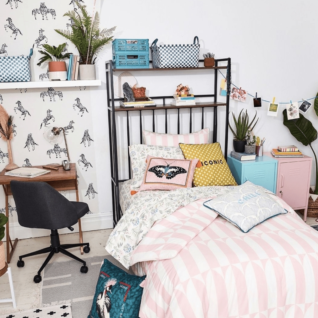 Có lẽ phần quan trọng nhất trong phòng trọ của bạn chính là chiếc giường. Hãy biến nó thành một không gian ấm cúng và làm đẹp căn phòng bằng cách đặt trên đó bộ ga giường xinh xắn và thoải mái. Đây sẽ là nơi mà bạn muốn đặt lưng sau những giờ học khuya mệt mỏi.