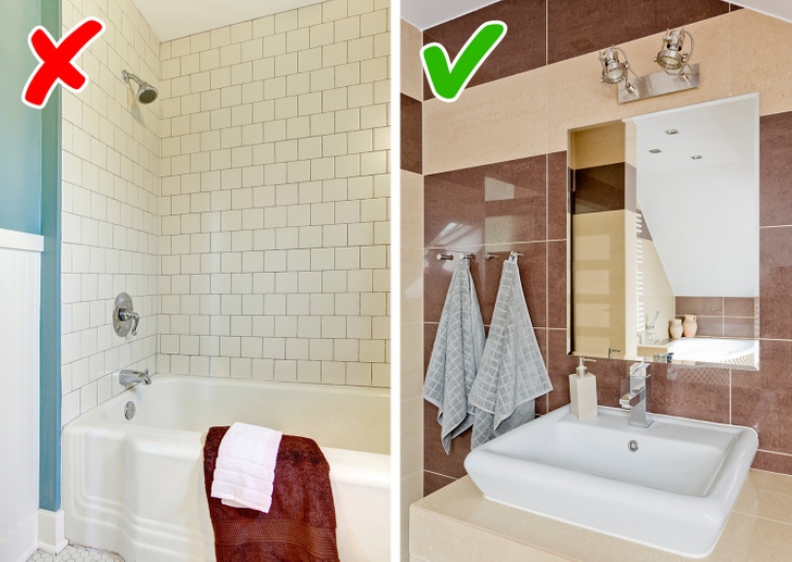 Sử dụng gạch nhỏ không phải là ý tưởng tốt nhất vì một vài lý do. Đầu tiên, các chi tiết nhỏ làm cho không gian bị bé hơn một cách trực quan. Thứ hai, gạch nhỏ không thực tế do có nhiều đường nối gạch cần thời gian dài hơn để làm sạch.