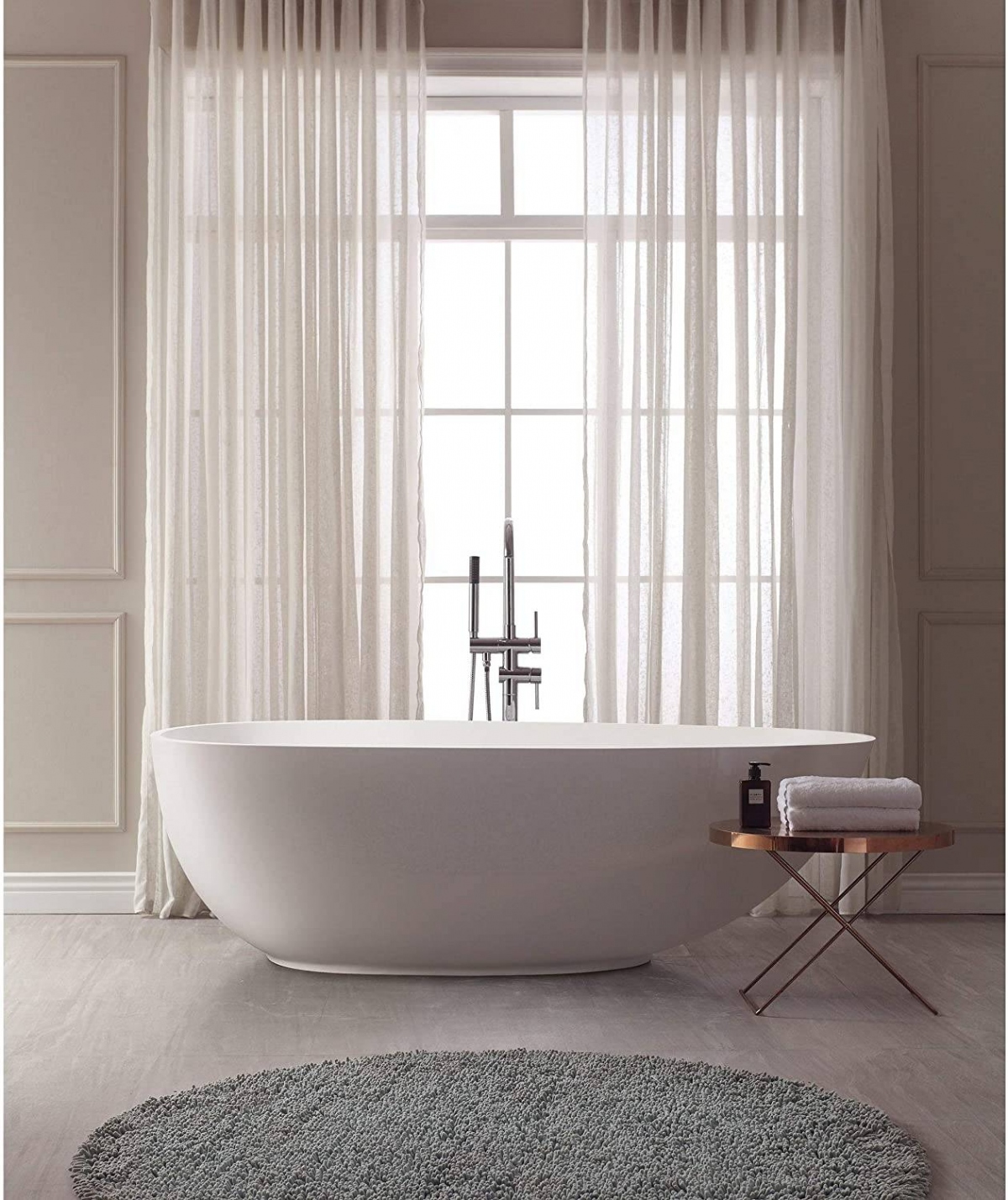 Mỗi nhà thiết kế chuyên nghiệp sẽ tư vấn cho bạn thêm rèm dài để làm cho không gian của bạn trông đắt tiền hơn. Thủ thuật thông minh này sẽ hiệu quả với phòng tắm của bạn, giúp kéo dài cửa sổ và khiến căn phòng trông cao hơn so với thực tế. Màu trung tính mang lại cảm giác tinh tế và giúp tạo ra một nơi nghỉ dưỡng sang trọng giống như spa trong ngôi nhà của bạn.