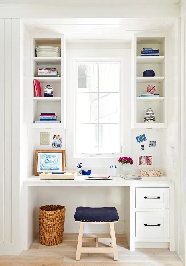 Bàn học tích hợp có thể là một khoản đầu tư đáng giá có thể thích ứng với các mục đích sử dụng khác nhau khi con lớn lên. Các ngăn kéo kín cung cấp không gian để lưu trữ các vật dụng có xu hướng lộn xộn, chẳng hạn như giấy và bút chì. Một tủ sách cao trưng bày sách và thú nhồi bông khi trẻ còn nhỏ, nhưng sau này có thể dùng để trưng bày đồ sưu tầm yêu thích của con.