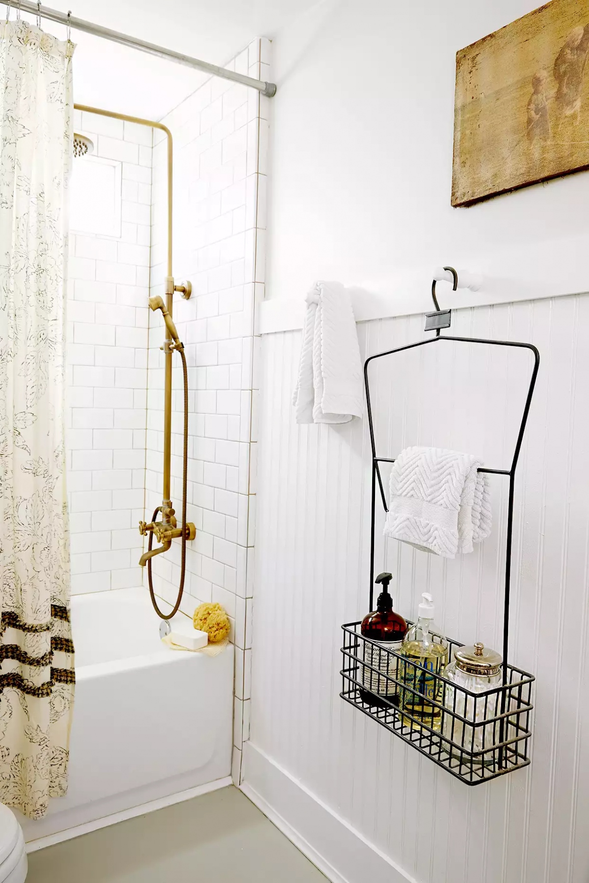 Giá treo có thể là sự lựa chọn hữu hiệu để lưu trữ những món đồ như sữa tắm, dầu gội, dầu xả, lọ tinh dầu thơm,... hay bông tắm, xà phòng,... Bạn nên treo chúng trên móc hoặc gắn chốt ở một vị trí dễ lấy. Đối với những giá treo như vậy, bạn không chỉ sắp xếp được đồ vật một cách gọn gàng và hợp lý, mà còn giúp những món đồ này được khô ráo, tránh bị mốc trong môi trường ẩm ướt của phòng tắm.