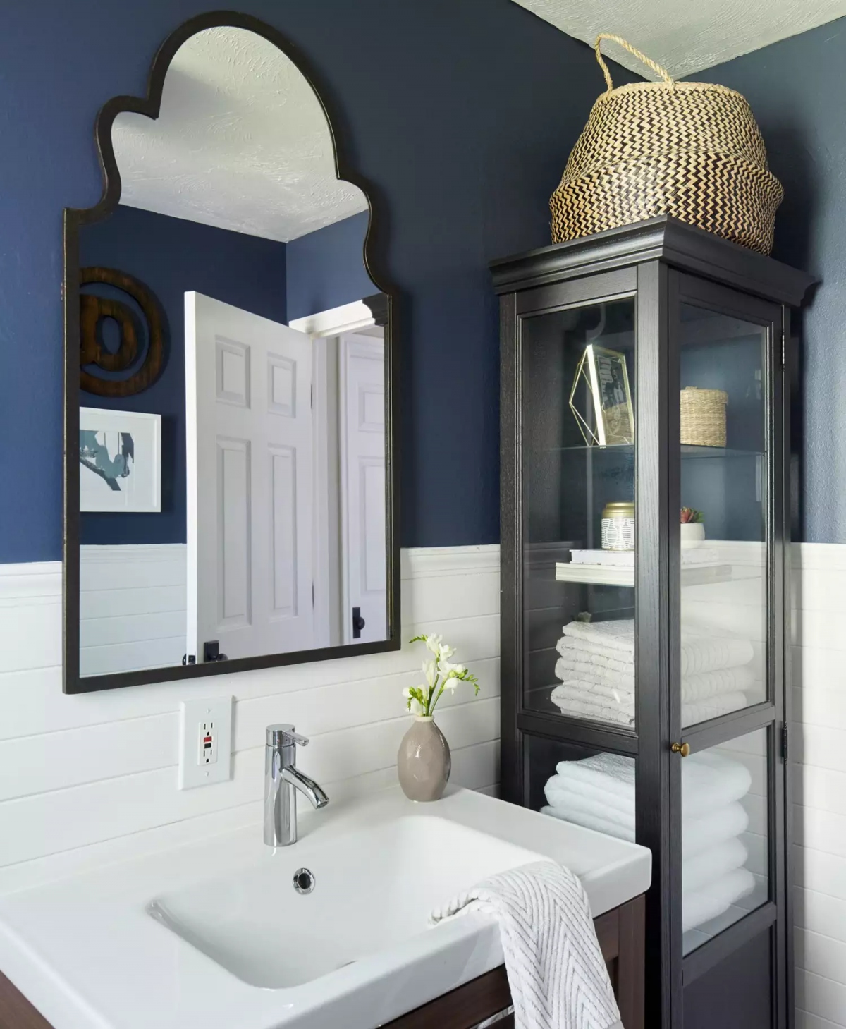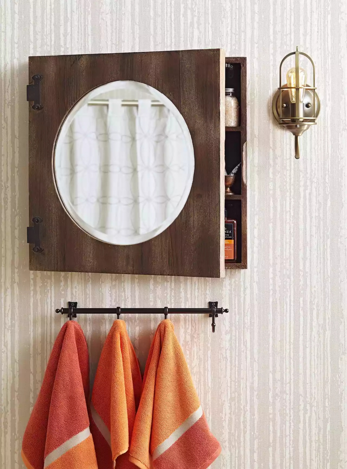 Thay vì phải sắm thêm những chiếc kệ hay giỏ đồ cồng kềnh, bạn cũng có thể sử dụng những món đồ nội thất đa năng. Bạn có thể lựa chọn những chiếc gương có thể dễ dàng mở ra như trên, bình thường là chiếc gương để soi và trang điểm, nhưng đằng sau lại là nơi lưu trữ tiện ích. Ngoài ra, xu hướng tủ âm tường cũng đang rất được ưa chuộng hiện nay. Nó không chỉ giúp tiết kiệm tối đa hóa diện tích mà còn giúp phòng tắm trở nên gọn gàng hơn, những món đồ được cất giấu cũng giúp không gian đơn giản hóa và không làm rối mắt người nhìn.