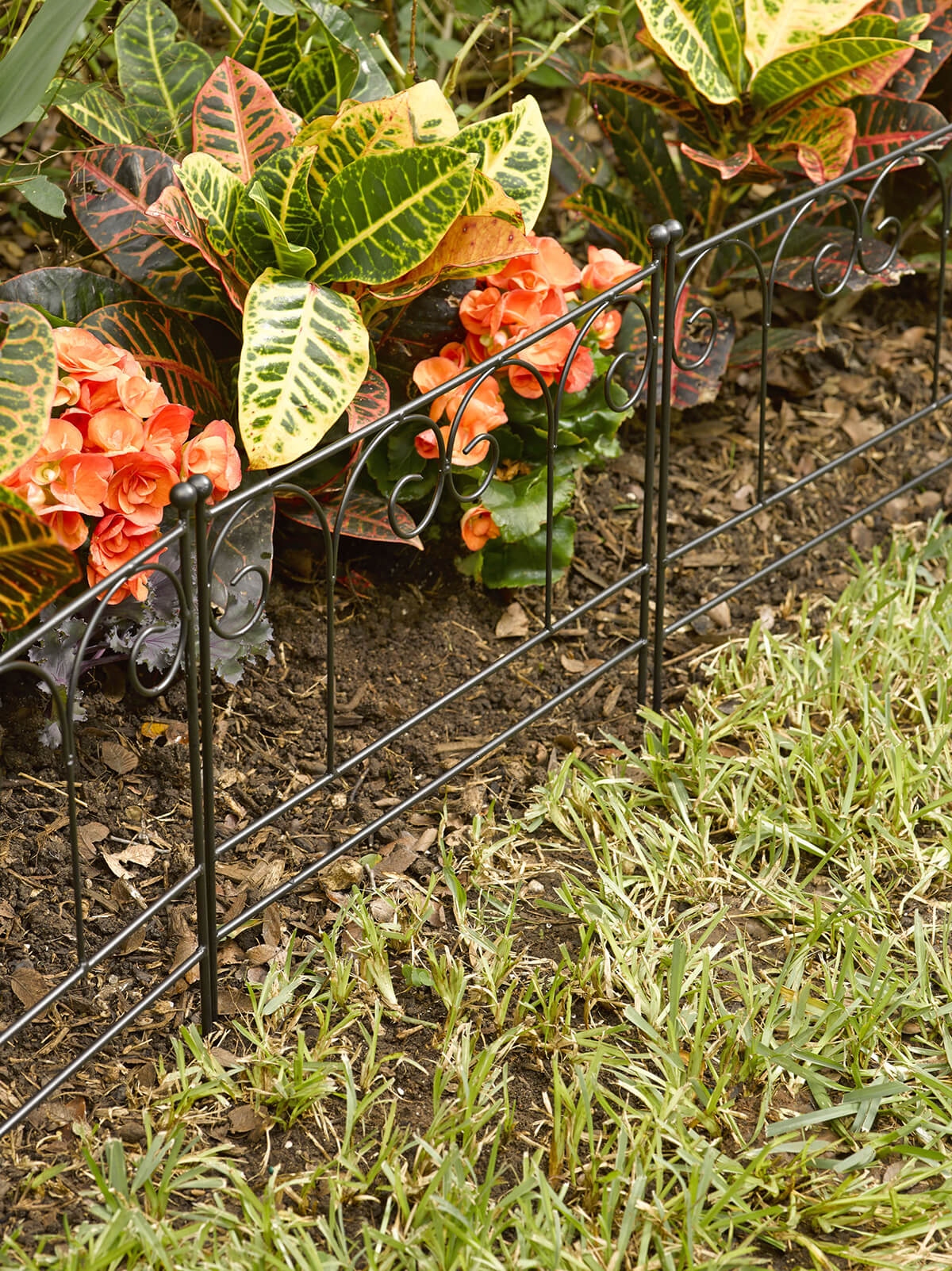 Đôi khi, tất cả những gì bạn cần là một hàng rào đen đơn giản được làm từ dây mảnh hoặc sắt nhỏ để bao quanh khu vườn hoặc bãi cỏ của bạn. Hàng rào trang trí này tuy nhỏ nhưng lại làm nổi bật cây cối trong vườn. bạn có thể uốn hàng rào thành những hình thù bất kỳ để tạo sự bắt mắt và gây chú ý. Mặc dù hàng rào này không lớn lắm nhưng những thiết kế phức tạp rất lý tưởng để thu hút ánh nhìn từ mọi người xung quanh.