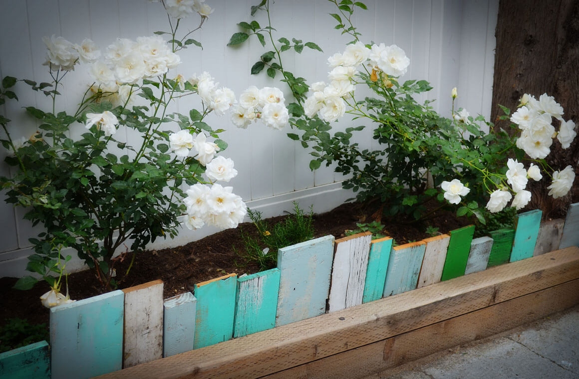 Kết hợp chỗ ngồi và cây trồng, ý tưởng viền sân vườn này là vô cùng hoàn hảo cho sân sau. Sử dụng gỗ cũ hoặc ván gỗ đã qua phong hóa để tạo một chỗ ngồi dọc theo vườn hoa của bạn. Tuy nhiên, nhớ chà nhám gỗ và xử lý gỗ để tránh các mảnh vụn và vết thối trên chỗ ngồi.