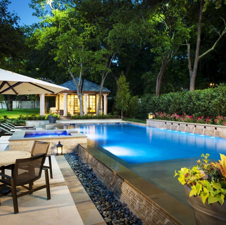 Tùy thuộc vào kích thước và hình dạng của khu vực sân sau mà bạn có thể định hình vị trí cho bể bơi. Bể bơi nhỏ nằm ở góc sân thay vì chiếm vị trí trung tâm cũng là một ý tưởng không hề tệ. Thiết kế này sẽ giúp tiết kiệm không gian và bạn sẽ có dư một khoảng trống để thiết lập khu vực ăn uống ngoài trời. Đây là một ý tưởng tuyệt với cho những thiết kế bể bơi ngoài trời. Bạn có thể ngồi bên hồ bơi tận hưởng những món ăn ngon và ngắm thiên nhiên trong lành.