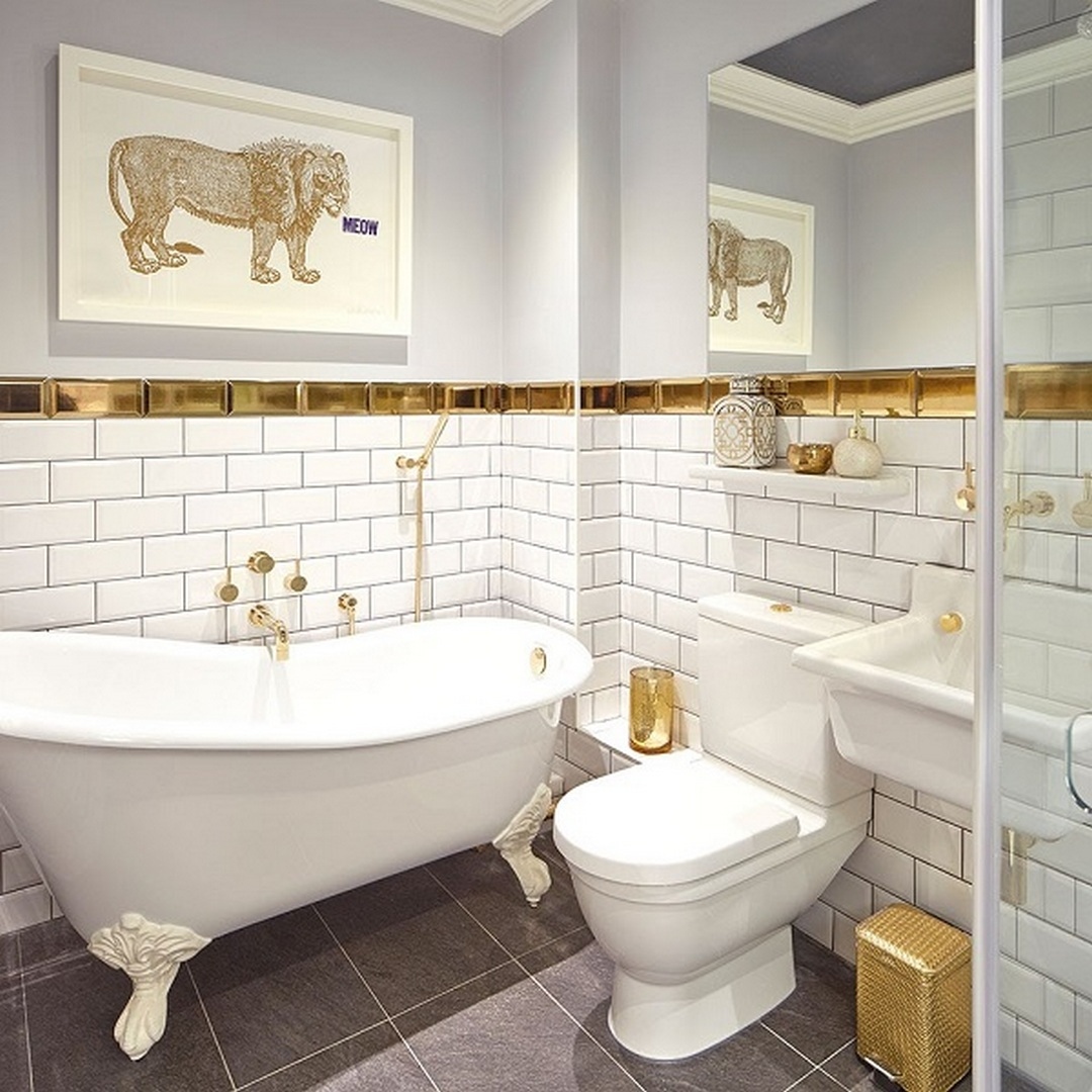 Một lựa chọn khác là ốp những phần lớn hơn của tường phòng tắm bằng gạch bóng. Gạch lát nền màu sáng không chỉ tăng thêm độ sáng mà bề mặt của chúng còn phản chiếu ánh sáng và giúp chiếu sáng tốt hơn cho căn phòng. Do đó, gạch bóng có thể mở rộng trực quan và làm sáng cho toàn không gian mà không cần đến cửa sổ.