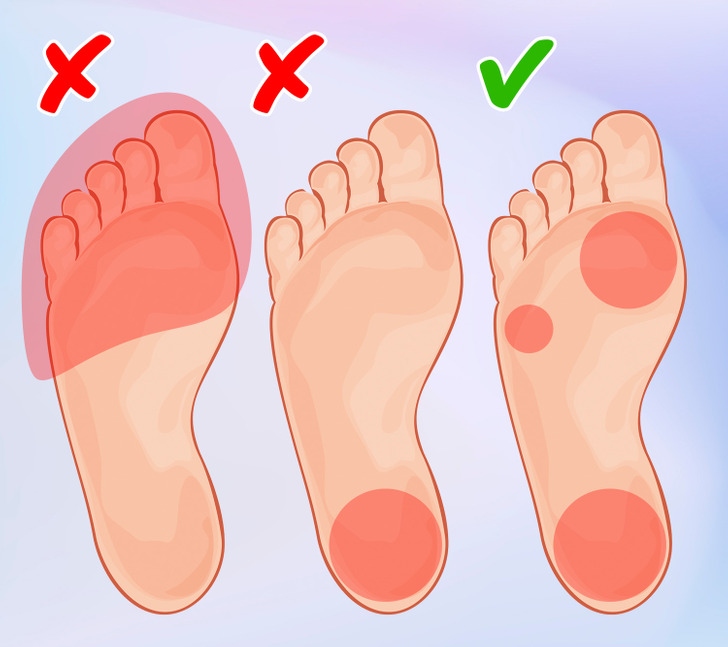 Khi ngồi xổm, có 3 điểm trên bàn chân mà bạn sẽ tạo áp lực nhiều nhất. Đó là điểm ngay trước ngón chân cái , điểm ngay trước ngón chân út và gót chân của bạn. Nếu bạn khó hiểu liệu mình có đang tạo áp lực phù hợp lên những điểm này hay không, thì bạn có thể cởi giày ra. Điều này sẽ cung cấp cho bạn khả năng cảm nhận áp lực dễ dàng hơn rất nhiều, từ mặt đất thẳng đến chân của bạn.