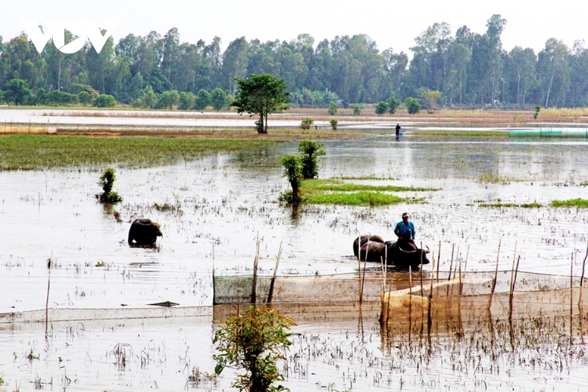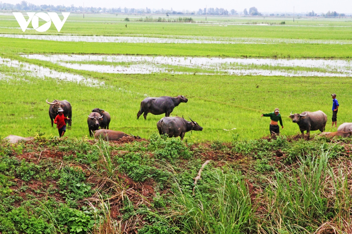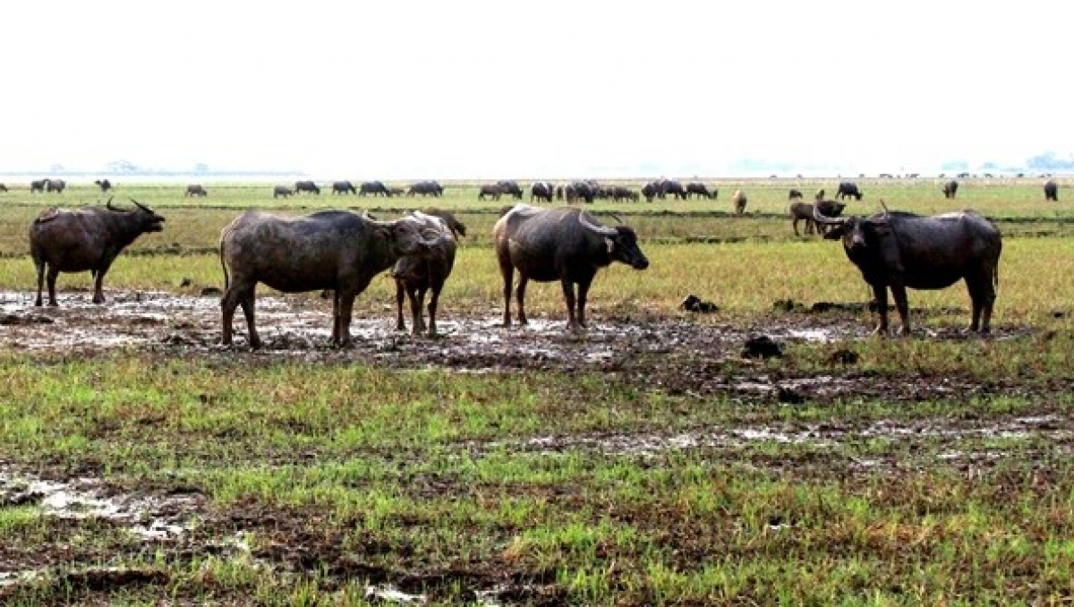 Từng đàn trâu vượt qua các cánh đồng để kiếm thức ăn