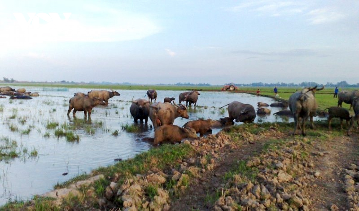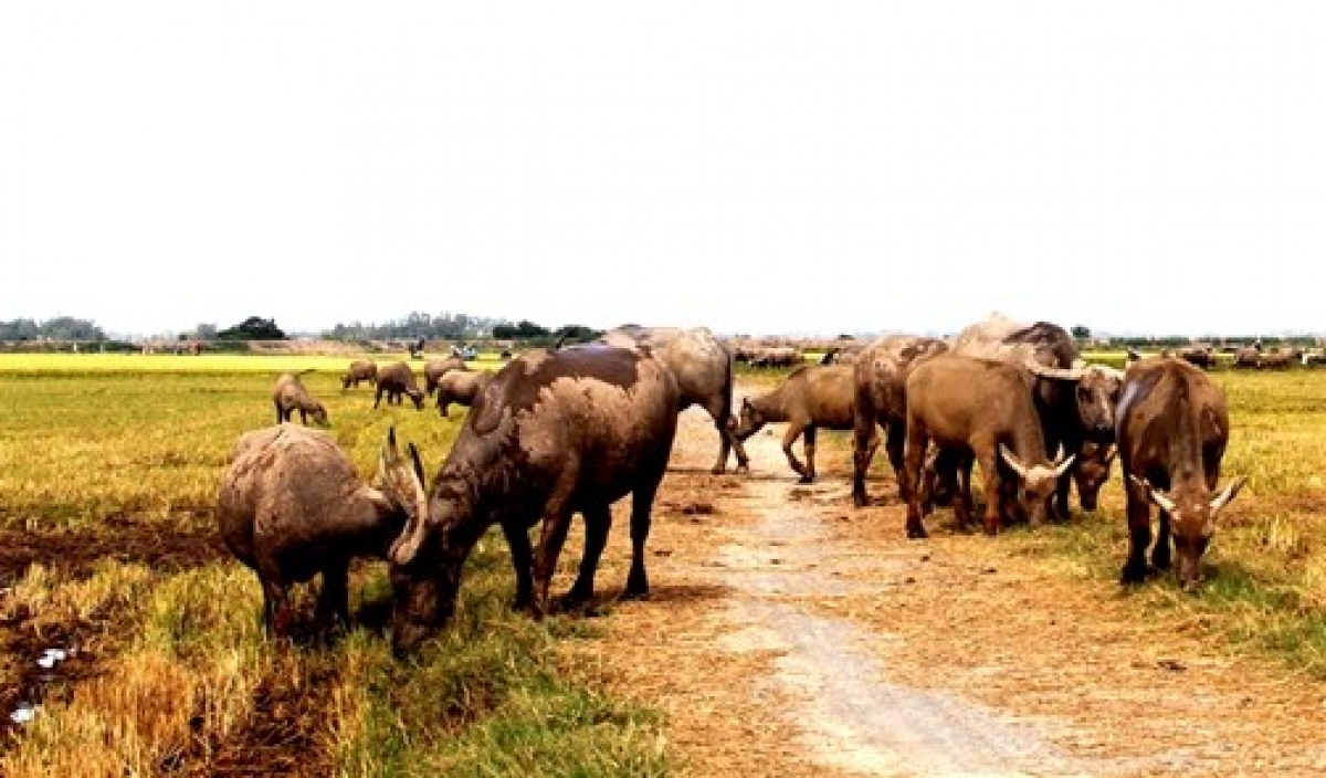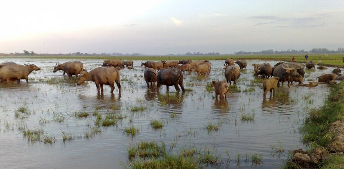 Trâu được lùa ra đồng từ sớm đến chiều tối sẽ được người dân lùa về