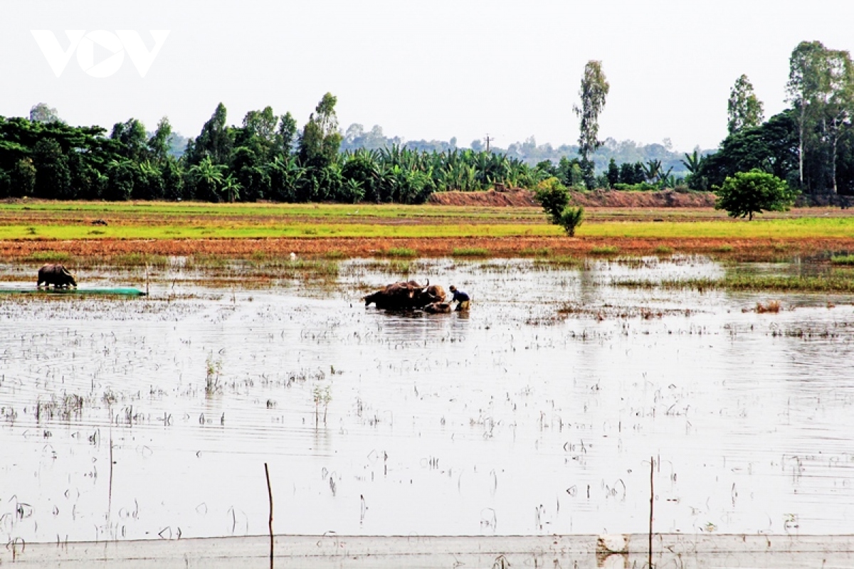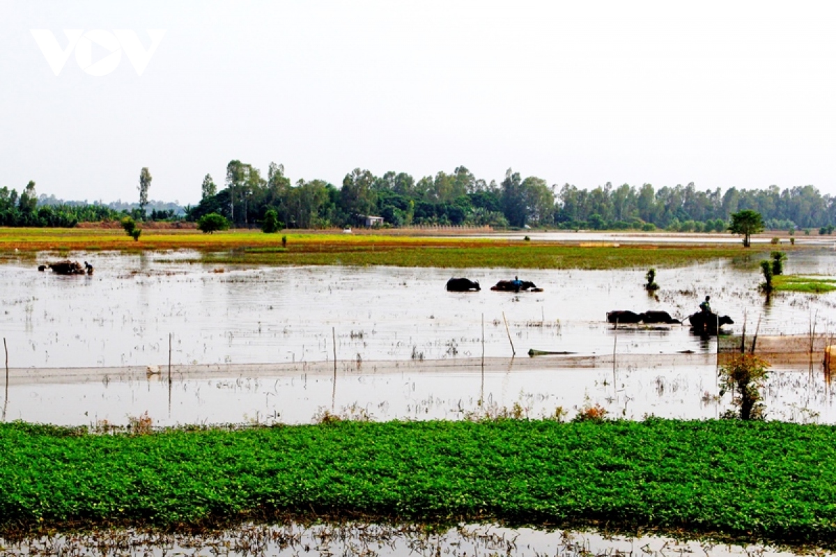 Nước ở thượng nguồn sông Mê Kông đổ về mang theo mang theo phù sa, tôm cá và biết bao sản vật mùa nước nổi. Đây cũng là lúc người dân lùa những đàn trâu di chuyển qua các cánh đồng để tìm kiếm thức ăn