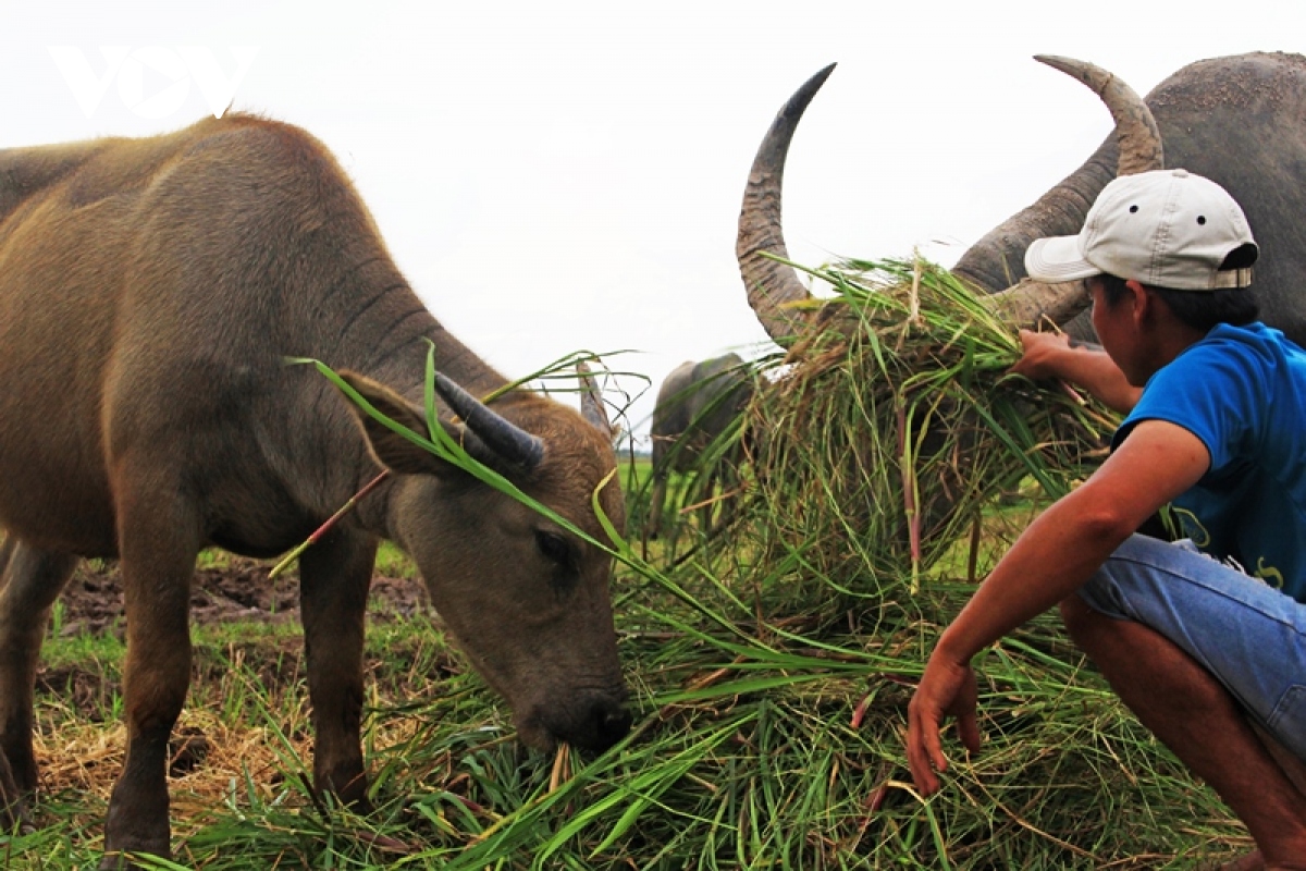 Nhiều gia đình có nuôi trâu tập hợp thành đàn lớn rồi giao cho những thanh niên nuôi trong những tháng mùa nước nổi