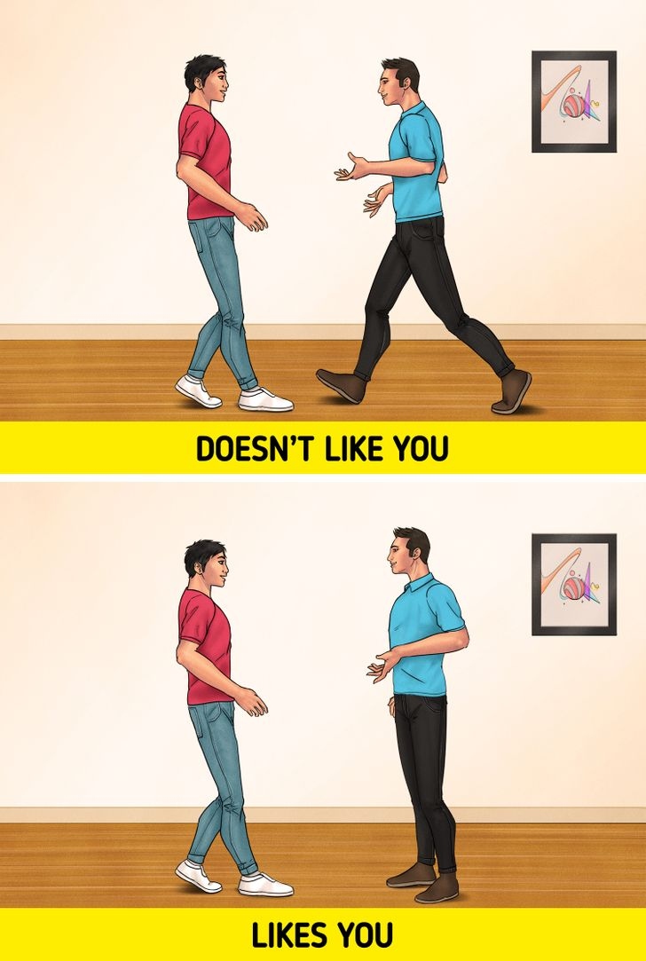 Chú ý đến mức độ gần gũi của một người với bạn cũng là cách để xác định xem họ có thiện cảm với bạn hay không. Nếu ai đó lùi lại phía sau khi bạn tiến lại gần, đó có thể là một dấu hiệu cho thấy mối liên hệ giữa hai bạn không tốt đẹp lắm, và ngược lại./.