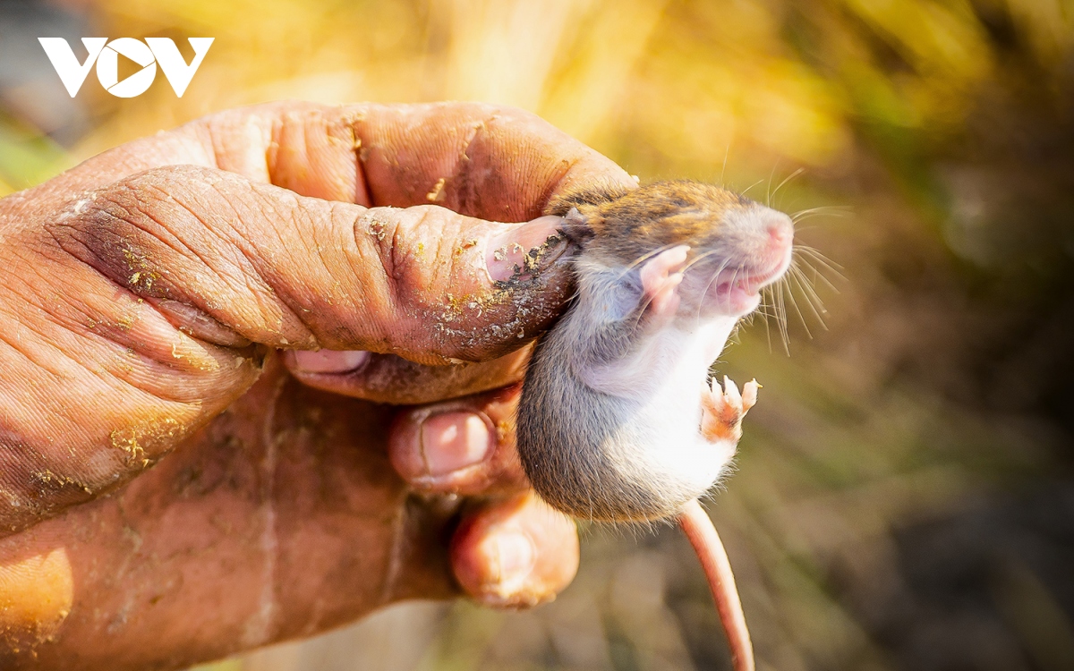 Họ đào đất tới cuối cùng hang chuột để bắt; cũng có khi động ổ, chuột bỏ chạy khỏi hang, những thợ nghề này rượt theo vồ