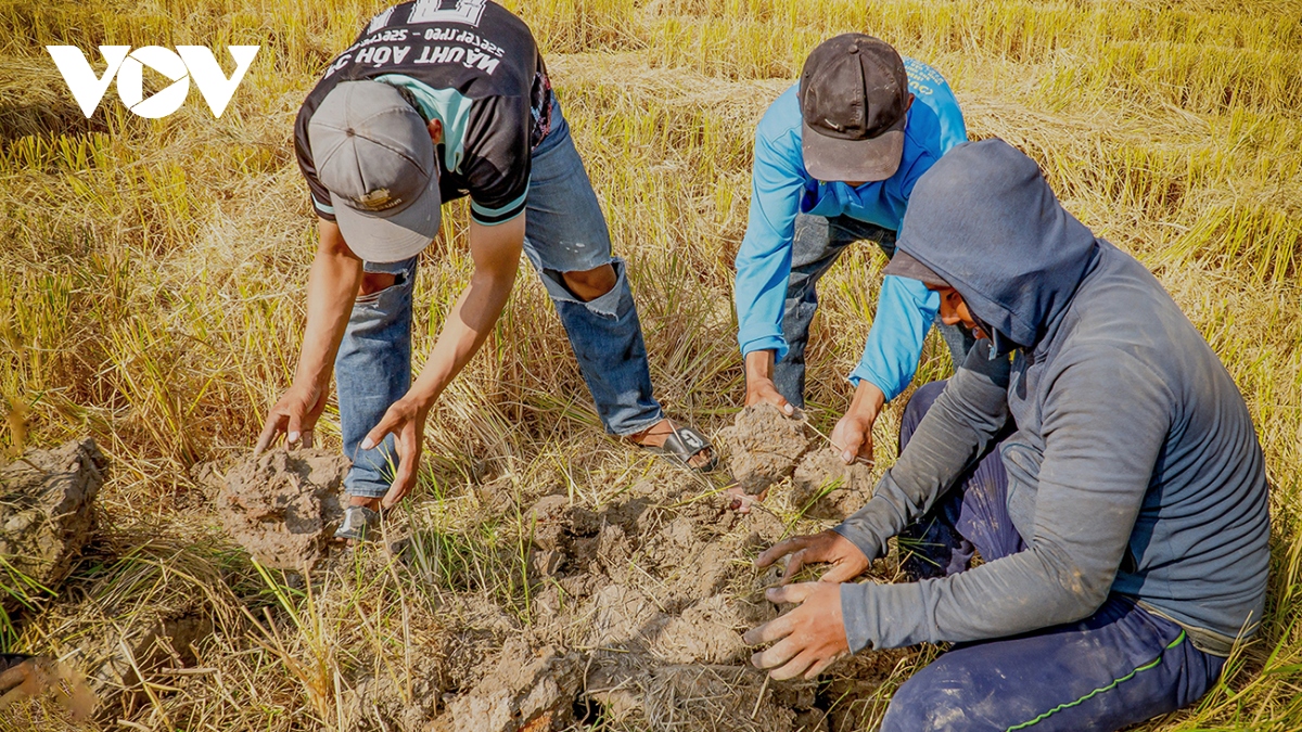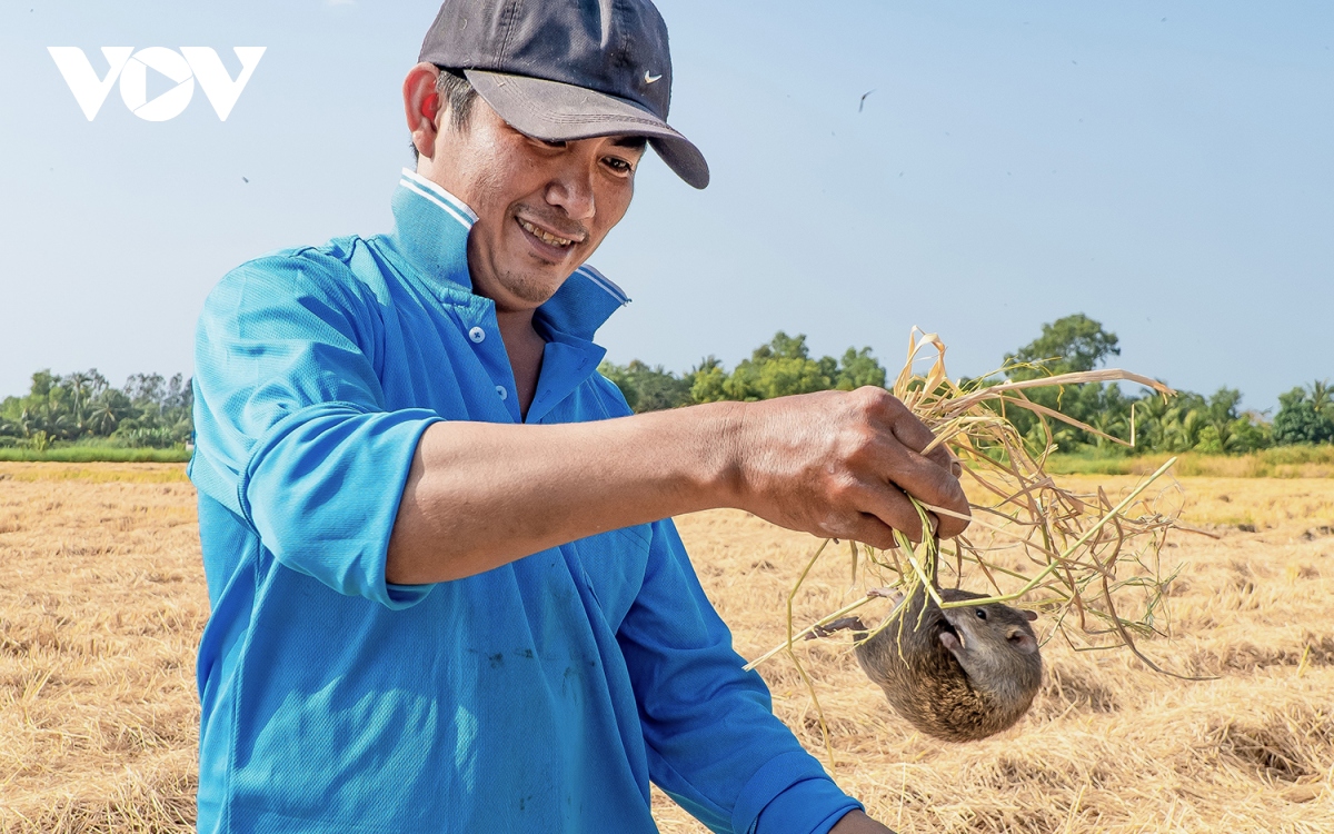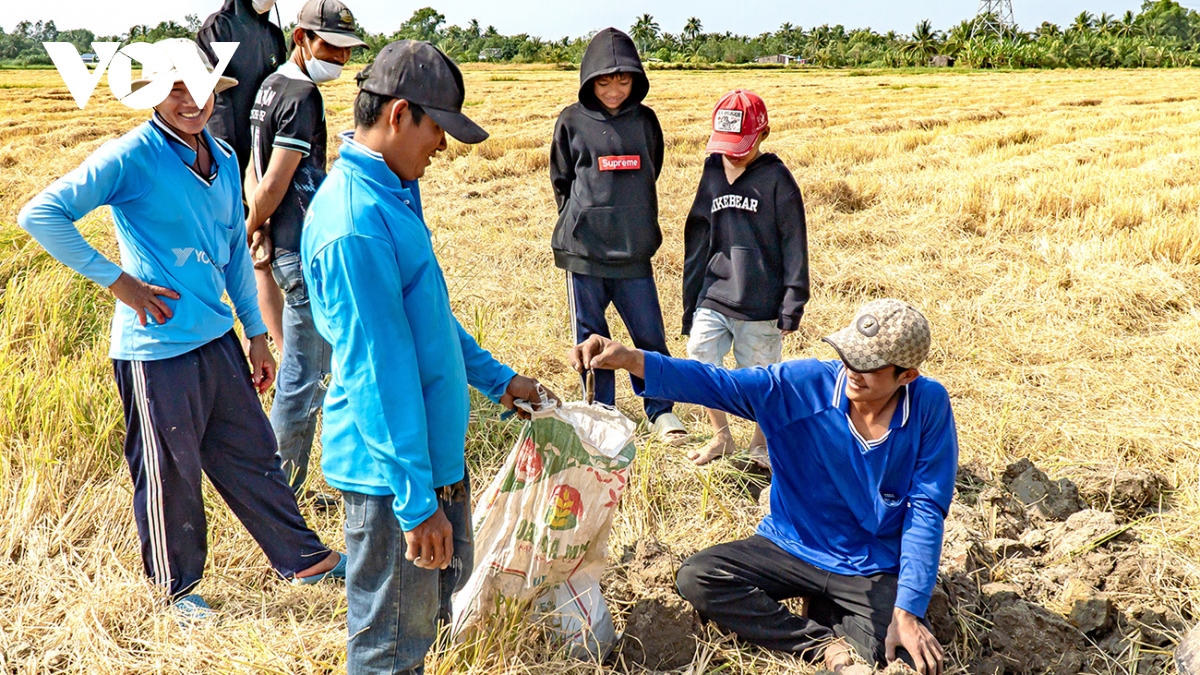 VOV.VN - Người dân tỉnh Cà Mau thường cùng nhau vây bắt chuột đồng vào thời điểm thu hoạch lúa. Sau khi thu hoạch, chuột vào hang sinh sống bà con cũng đào bắt để bớt gây hại vụ mùa.
