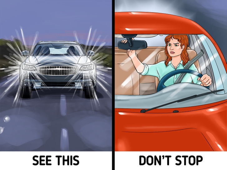 Đèn pha nhấp nháy khá thường xuyên được sử dụng để cảnh báo người lái xe khác về một vấn đề mà họ không biết. Tuy nhiên, một số sử dụng nó để vượt qua. Nếu bạn chắc chắn rằng mọi thứ đều ổn với chiếc xe của mình, đừng dừng lại và hãy cứ tiếp tục đi.