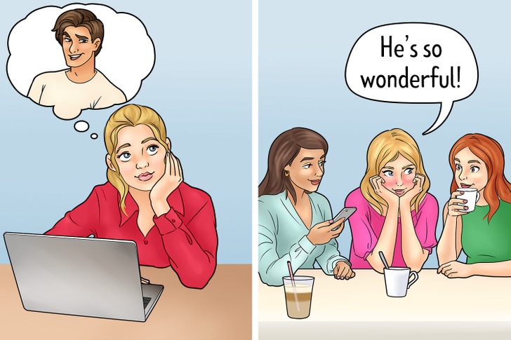 Bộ não sẽ tua lại những ký ức trước đó của bạn với người yêu ở cạnh nhau, dẫu hiện tại là khi bạn đang làm việc, ở nhà một mình hay đi bên ngoài với bạn bè của bạn. Bạn thường xuyên xem ảnh của hai người, không ngừng nói về chúng với những người bạn và gia đình. Với bạn, đối phương là điều đầu tiên hiện lên trong tâm trí và nếu họ có một ngày tồi tệ, bạn cũng muốn ở đó và giúp đỡ bằng mọi cách có thể.
