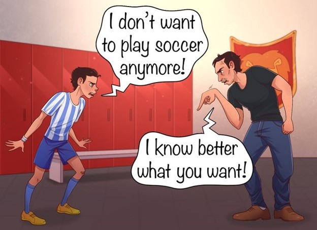 Các bậc cha mẹ chưa trưởng thành về mặt cảm xúc nghĩ rằng họ là những người duy nhất biết điều gì đúng. Nếu trẻ có ý kiến khác, thì chẳng ích gì khi đàm phán để tìm ra ý kiến trung gian, quan điểm của trẻ đơn giản là sẽ không được chấp nhận. Vì vậy, khi bạn còn là một đứa trẻ, có lẽ bạn sẽ luôn phải làm mọi thứ theo cách mà cha mẹ bạn muốn, và những gì họ tin là tốt nhất cho bạn.