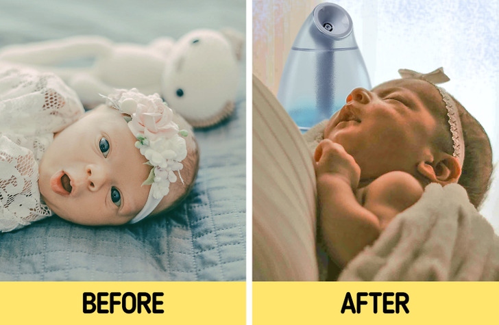 Một số trẻ em ngủ thiếp đi khi nghe tiếng máy hút bụi hơn là nghe lời ru của mẹ! Âm thanh đơn điệu nhắc nhở trẻ sơ sinh về âm thanh trong bụng mẹ và điều này có tác dụng làm dịu trẻ. Ngày nay, bạn hoàn toàn có thể sử dụng các thiết bị tái tạo tiếng ồn trắng. Nó loại bỏ những tiếng ồn xung quanh và giúp bé đi vào giấc ngủ dễ dàng hơn, cũng không bị sợ hãi bởi những âm thanh đột ngột phát ra.