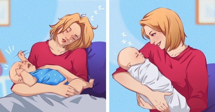 Thực hành quấn khăn cho bé đã được thử nghiệm trong nhiều năm và theo nghiên cứu, thực sự cải thiện giấc ngủ của trẻ sơ sinh. Quấn em bé trong một miếng vải mỏng hoặc một cái kén đặc biệt để chúng không tự làm vướng tay mình. Sau đó, bạn có thể ôm hoặc dùng tay vỗ nhẹ vào cánh tay và chân của chúng để giải phóng phản xạ co bóp và giúp bé thư giãn, đi vào giấc ngủ.