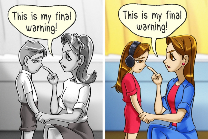 Khi cảm thấy thất vọng với hành động của con, các bậc cha mẹ thường trở nên “mất hứng” và tức giận. Nhưng khi chúng ta nghĩ về những tình huống tiêu cực khi lớn lên, đó là lúc chúng ta cần lưu tâm hơn về điều gì đã kích thích phản ứng phóng đại. Khi hành động của con khiến bạn không hài lòng, bạn nên cố gắng tìm ra nguyên nhân của hành vi này và đừng chỉ nổi điên như cách mà bạn từng chứng kiến từ cha mẹ bạn.