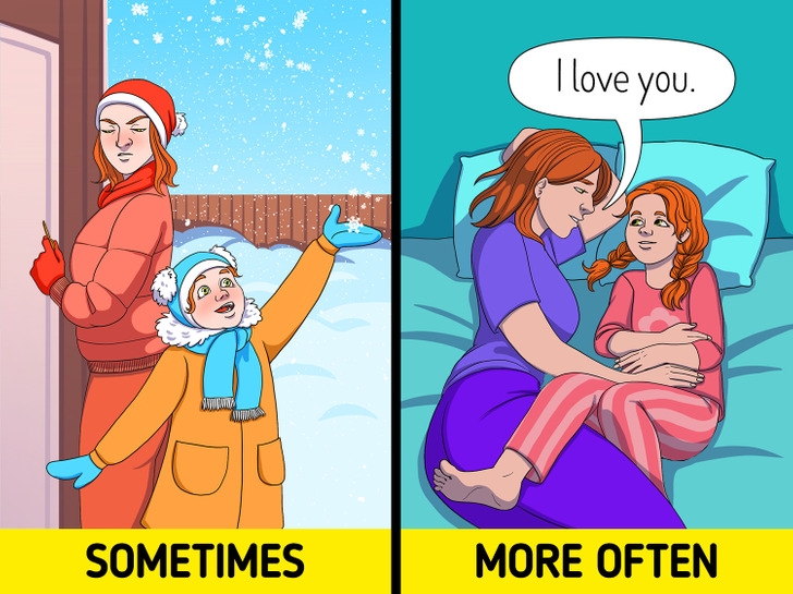 Luôn có mặt và tạo sự kết nối là điều cần thiết đối với sức khỏe của con. Điều này không có nghĩa là bạn phải cố gắng làm hài lòng chúng, chẳng hạn như đi bộ đến công viên trong thời tiết lạnh giá hoặc giải câu đố yêu thích cả ngày. Một lời thì thầm ngọt ngào và đơn giản có thể cho con thấy con chính là người đặc biệt đối với bạn.